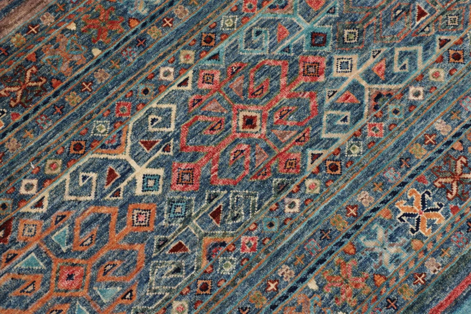 Der Orientteppich Samarkand besteht aus feiner Wolle, die für ihre Langlebigkeit und Weichheit bekannt ist. Diese natürlichen Fasern bieten nicht nur Komfort unter den Füßen, sondern tragen auch zur nachhaltigen Nutzung des Teppichs bei. Die handknüpfte Technik sorgt für eine hohe Knotendichte, die für die Qualität und Haltbarkeit des Teppichs ausschlaggebend ist. Jedes Muster wird mit großer Präzision und Sorgfalt in die Wolle eingearbeitet, sodass sich die exquisite Handwerkskunst in jedem Detail widerspiegelt.