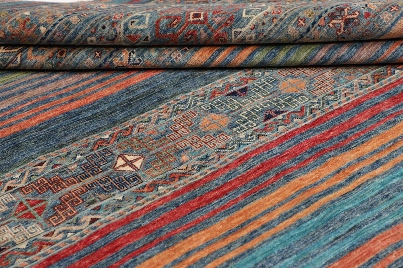 Der Orientteppich Samarkand hebt sich durch seine auffälligen Farben und das detailreiche Design hervor. Die bunten Muster sind eine Hommage an die entwickelten Kunsttraditionen der Region. Oft spiegeln sie die natürliche Umgebung und die reiche Flora des zentralasiatischen Raumes wider. Die Kombination aus Farben und Formen schafft eine lebendige Atmosphäre, die in jedem Raum für eine harmonische und einladende Stimmung sorgt.