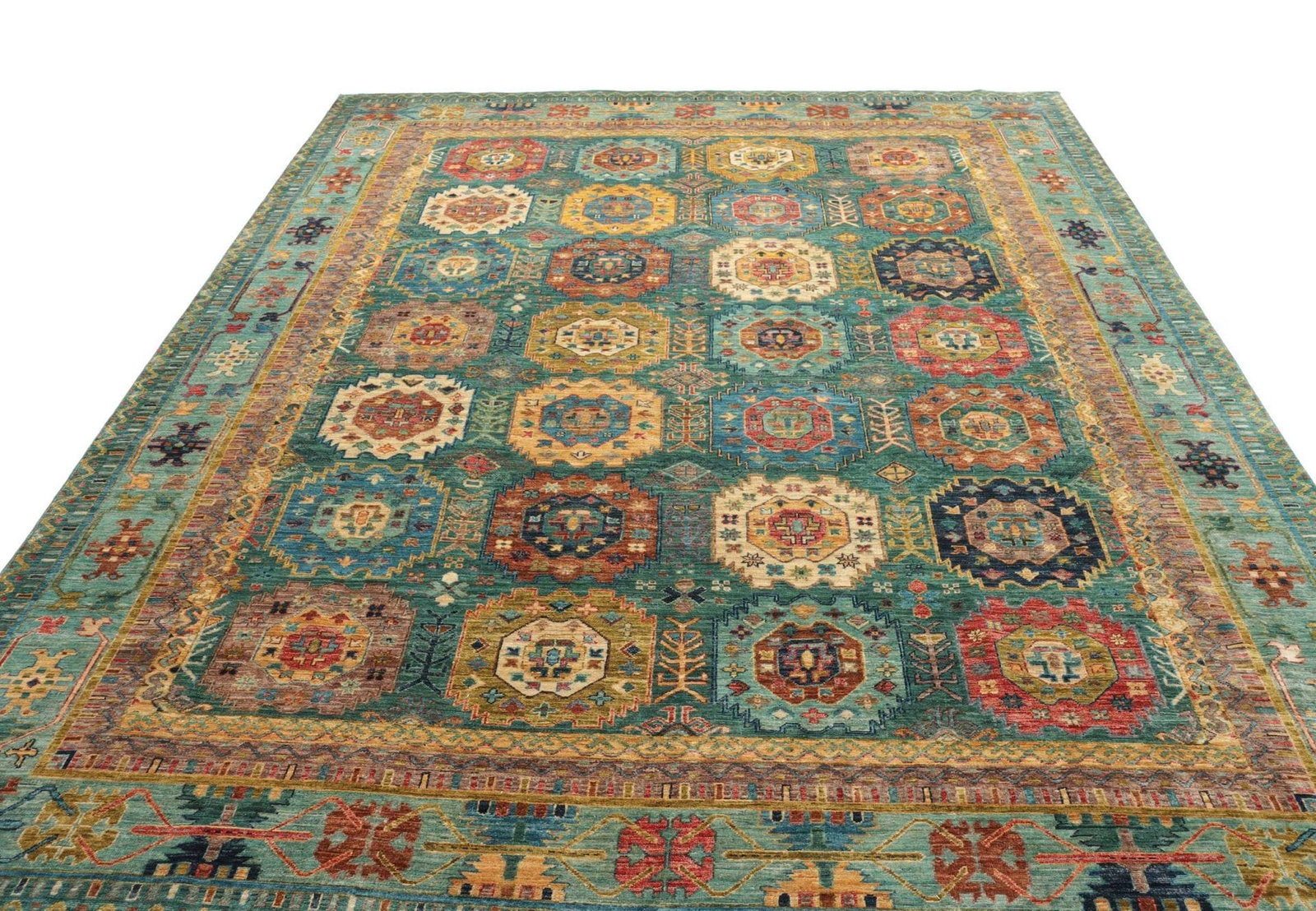 2605$ In den WarenkorbKlassischer Orientteppich Bochera – Hellgrün, 200×160 cm, handgeknüpft, Perserteppich