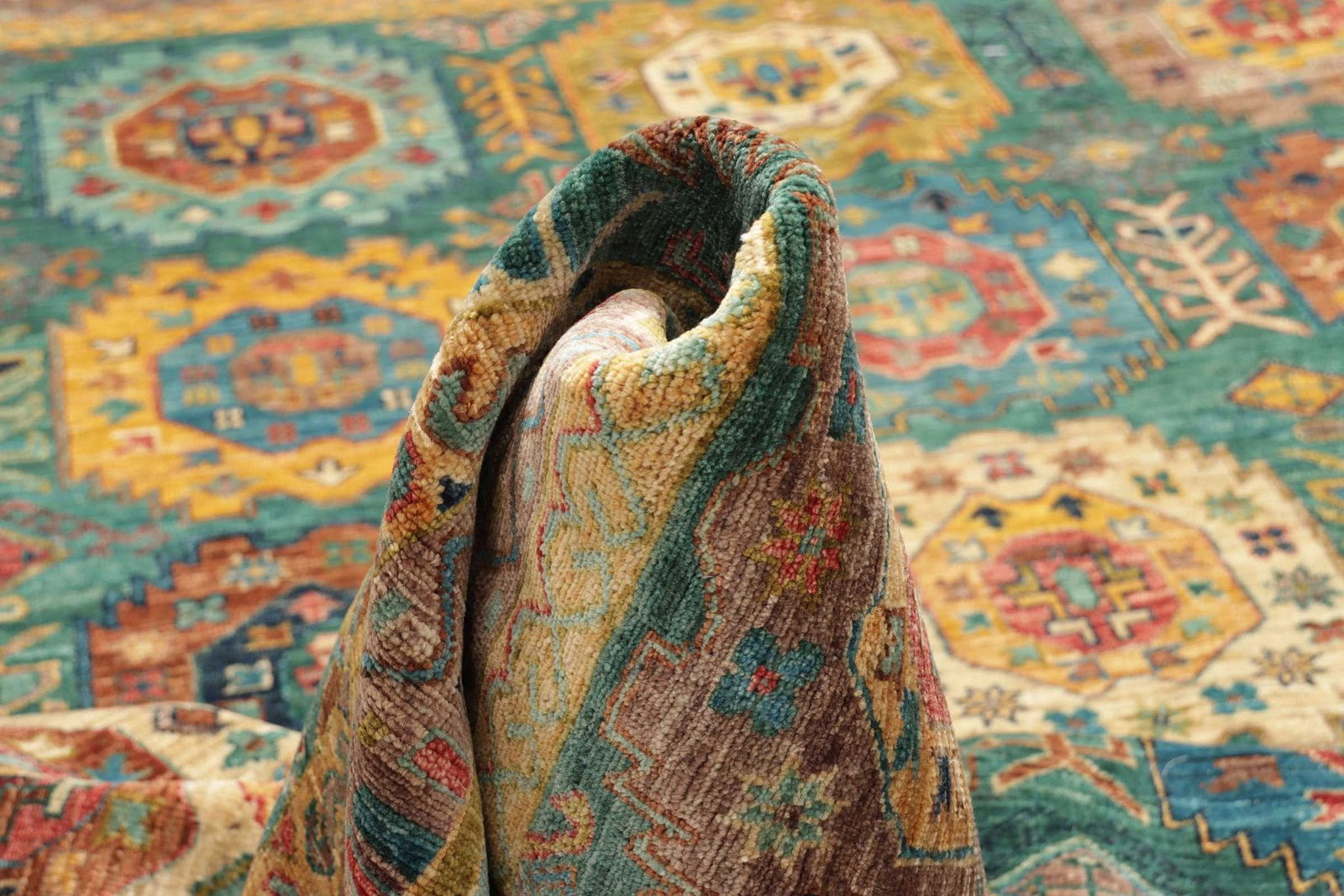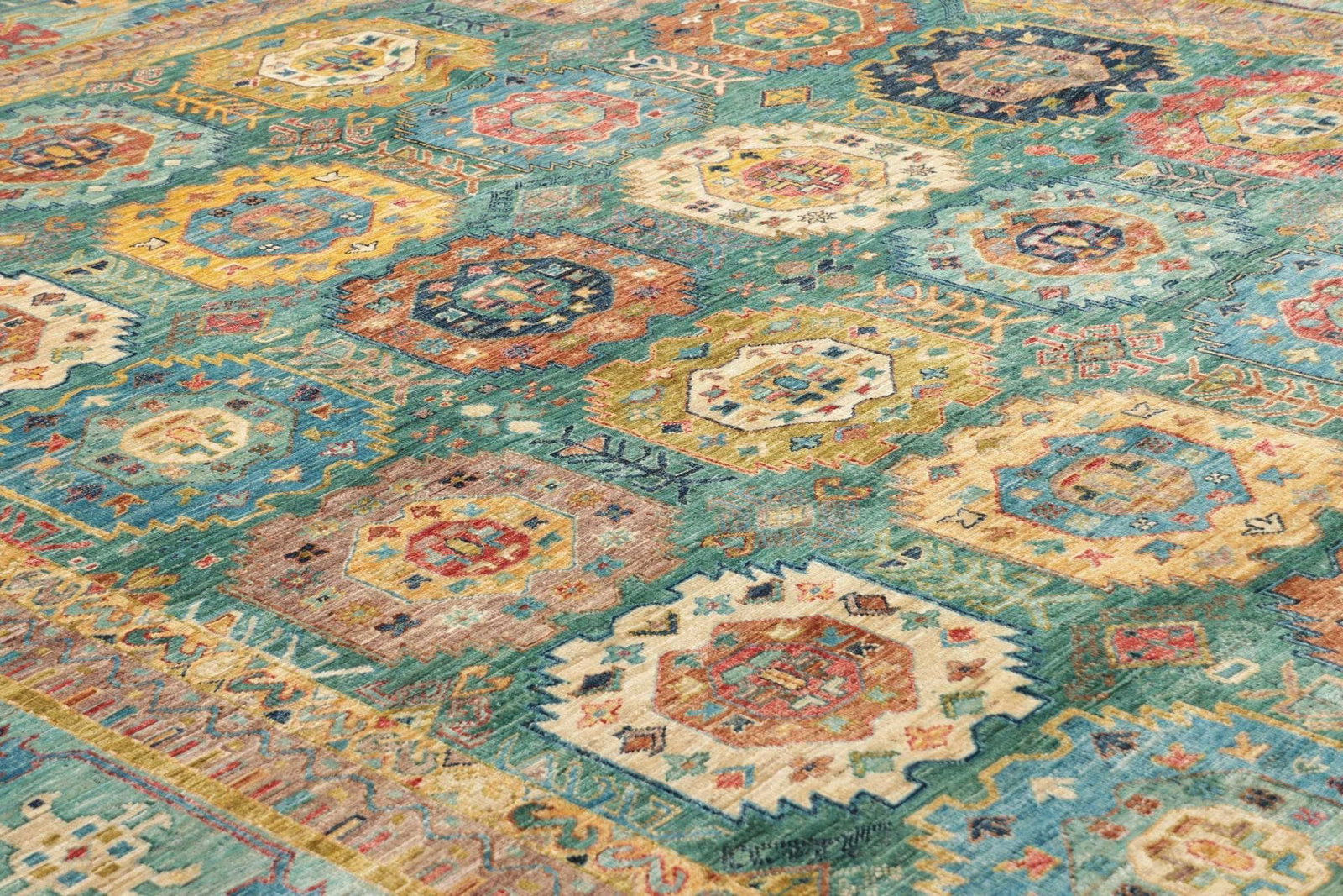 Der Orientteppich Samarkand ist aus 100% feiner Wolle gefertigt, die nicht nur weich und angenehm ist, sondern auch für ihre Strapazierfähigkeit und Langlebigkeit bekannt ist. Die Verwendung von Wolle als Hauptmaterial sorgt dafür, dass der Teppich sowohl luxuriös aussieht als auch für den täglichen Gebrauch geeignet ist. Die Handknüpftechnik, die für diesen Teppich verwendet wurde, ermöglicht eine hohe Knotendichte, was bedeutet, dass das Muster detailliert und die Farben lebendig sind. Handgeknüpfte Teppiche sind einzigartig, und jeder einzelne ist ein Unikat.