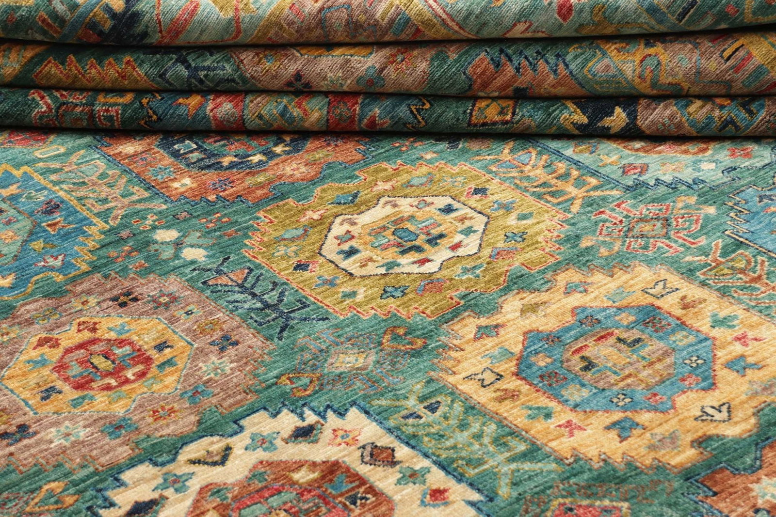 Samarkand, eine der ältesten Städte Zentralasiens, hat eine reiche Teppichtradition, die bis in die Antike zurückreicht. Die Stadt war einst ein wichtiger Knotenpunkt auf der Seidenstraße und diente als kultureller Austausch zwischen verschiedenen Zivilisationen. Die Teppichweber von Samarkand verwenden traditionelle Techniken, die über Generationen weitergegeben wurden. Die Kunst der Teppichknüpfung aus dieser Region zeichnet sich durch ihre lebhaften Farben und abwechslungsreichen Muster aus, die oft historische und kulturelle Geschichten erzählen.
