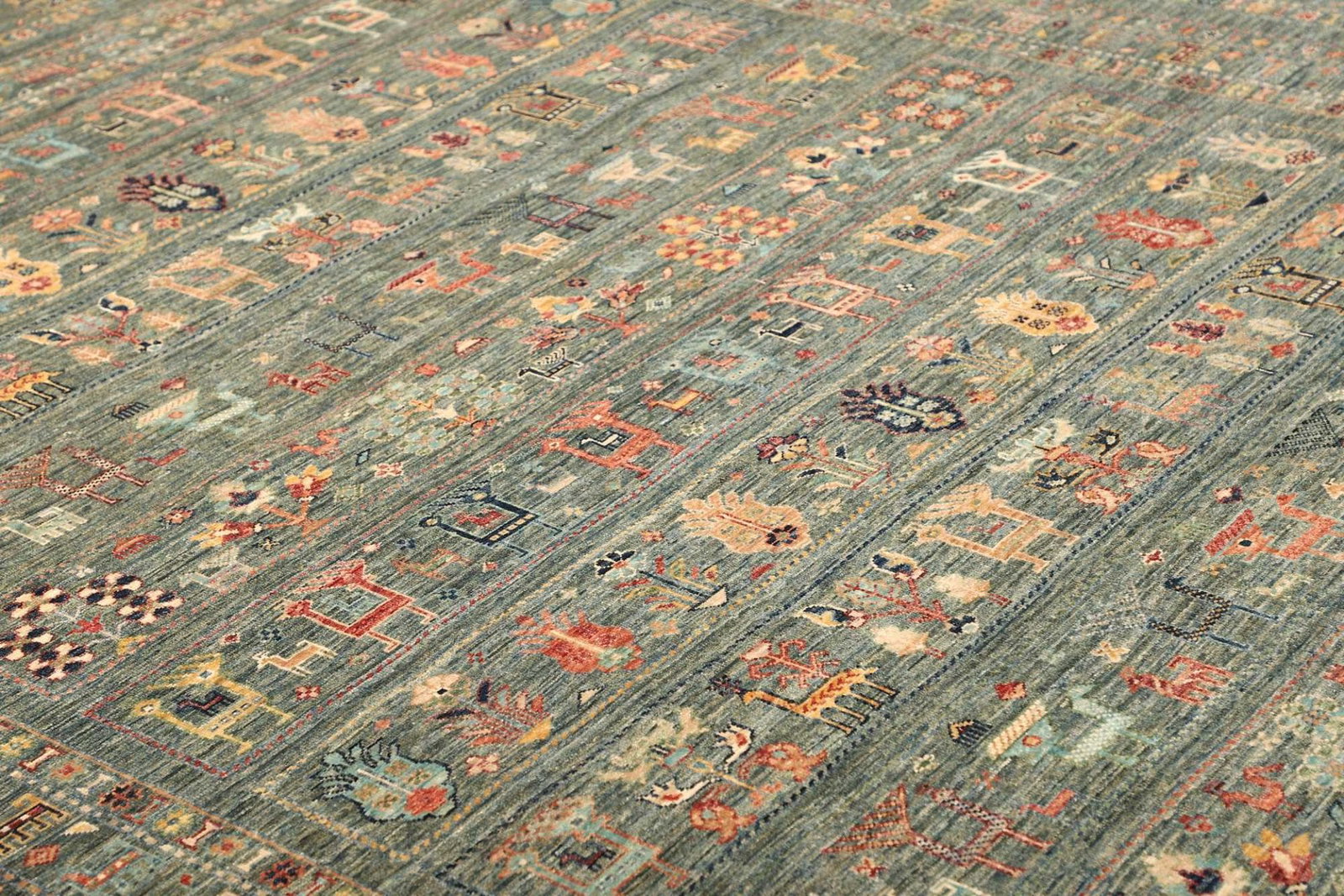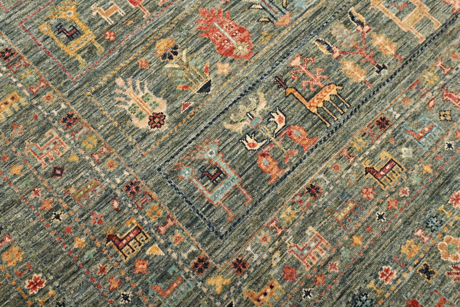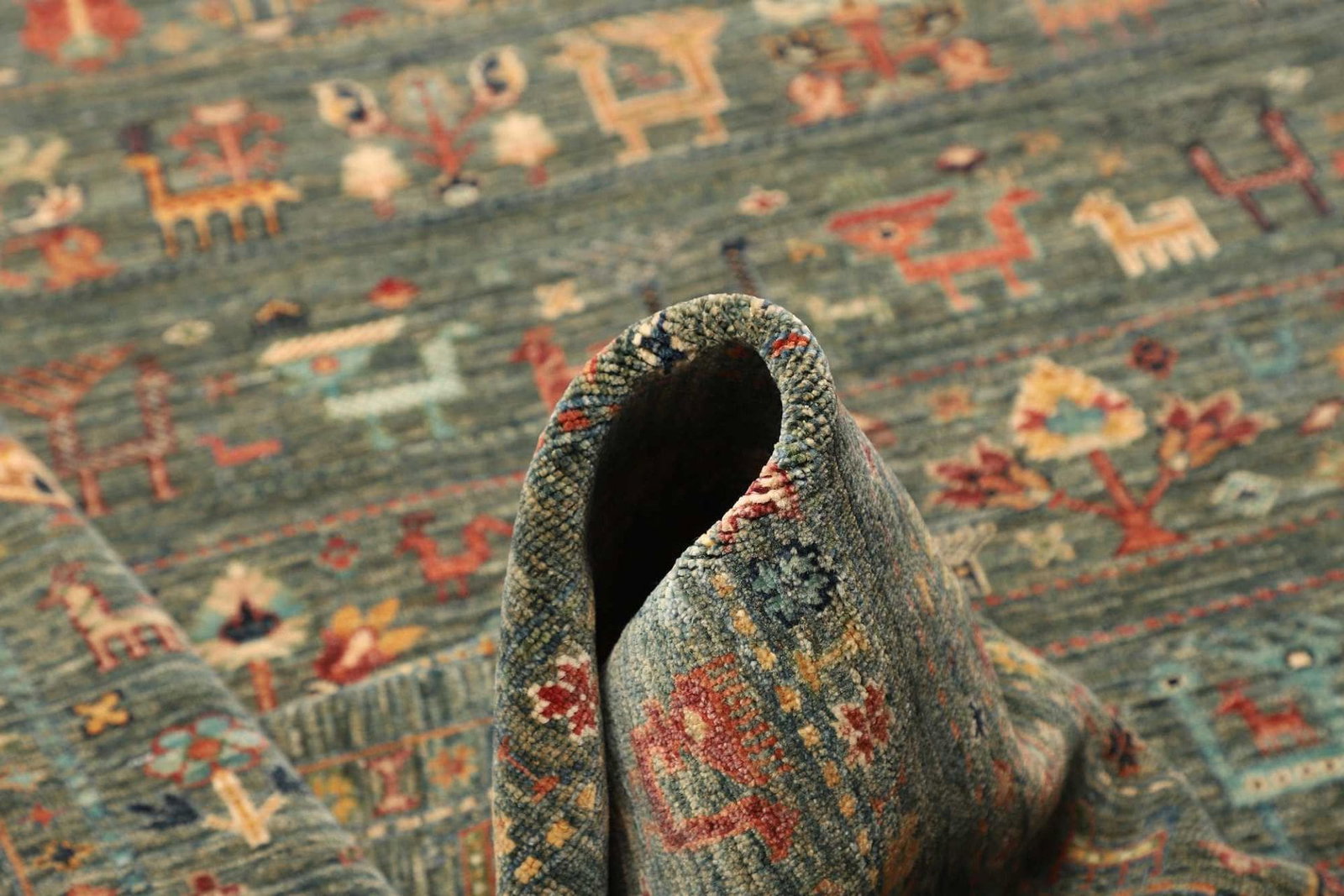 Die Verwendung von reiner Wolle verleiht dem Teppich nicht nur eine angenehme Haptik, sondern macht ihn auch besonders strapazierfähig und langlebig. Wolle ist ein Naturmaterial, das für seine Wärme, Weichheit und Robustheit bekannt ist. Durch die handgeknüpfte Technik wird jeder Teppich einzigartig. Die Knotendichte ist ein wichtiges Qualitätsmerkmal, das die Langlebigkeit und Detailgenauigkeit des Designs bestimmt. Durch die feine Knotentechnik sind die Muster und Farben besonders intensiv und lebendig.