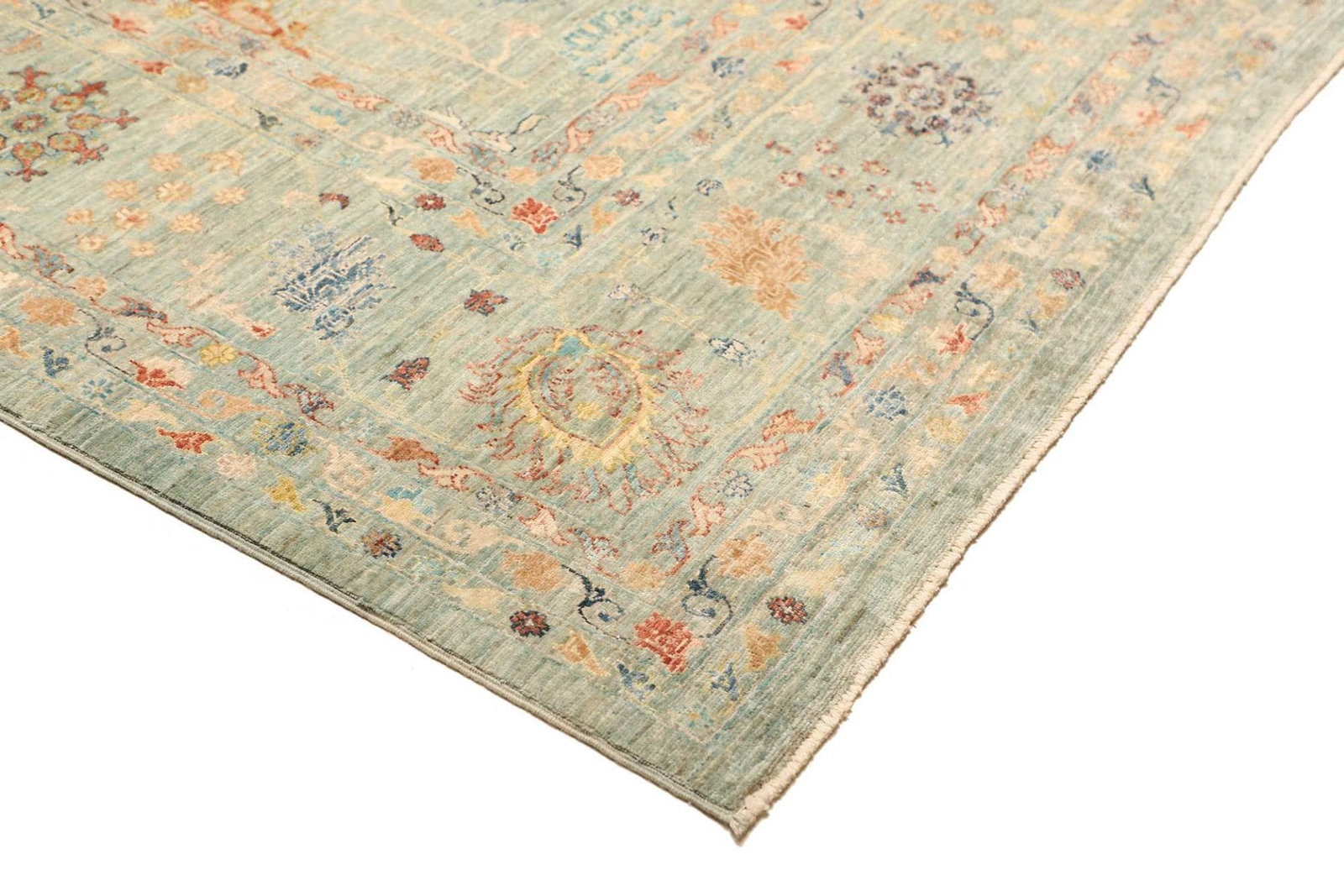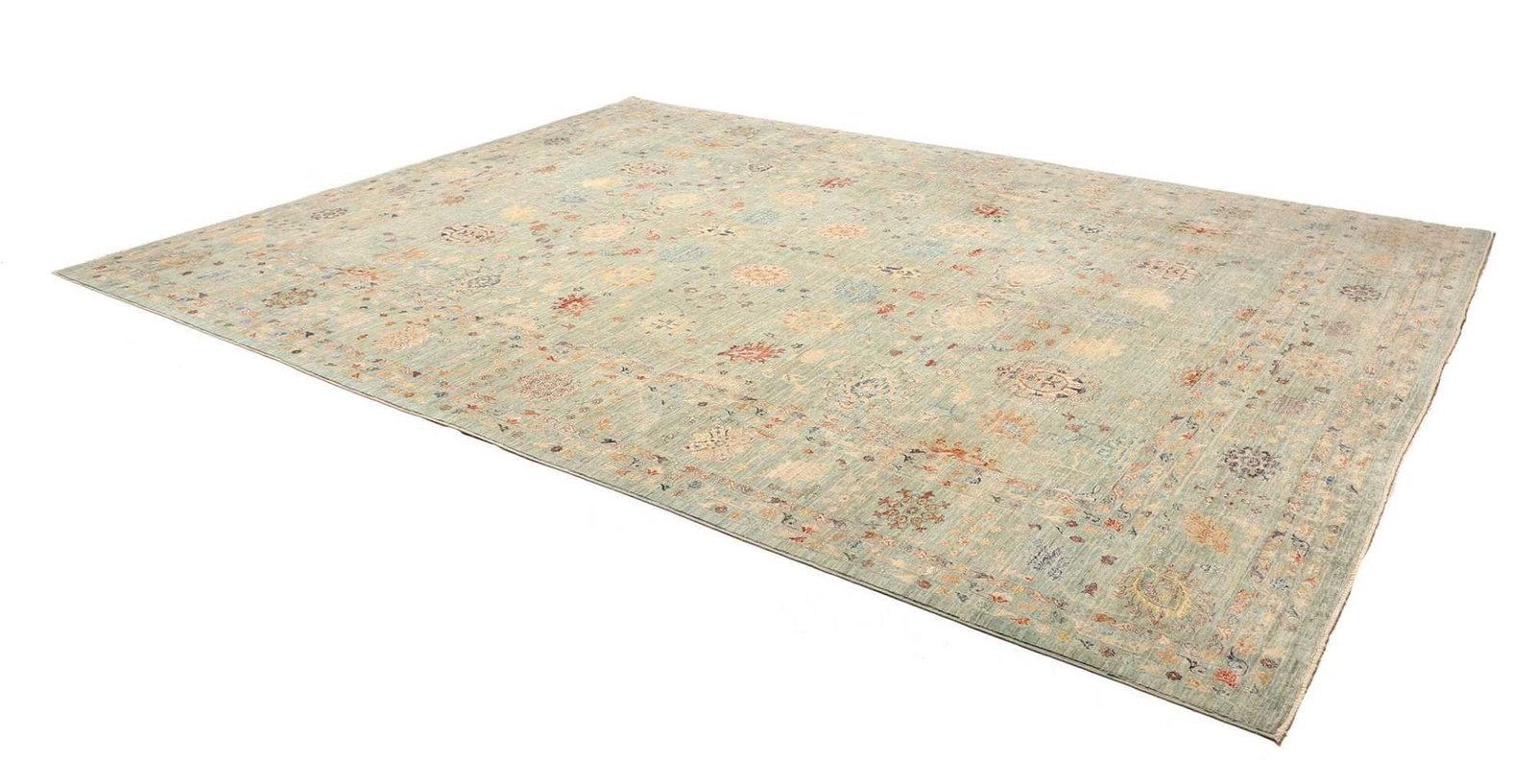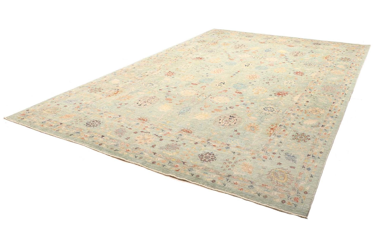 2605$ In den WarenkorbKlassischer Orientteppich Bochera – Hellgrün, 200×160 cm, handgeknüpft, Perserteppich