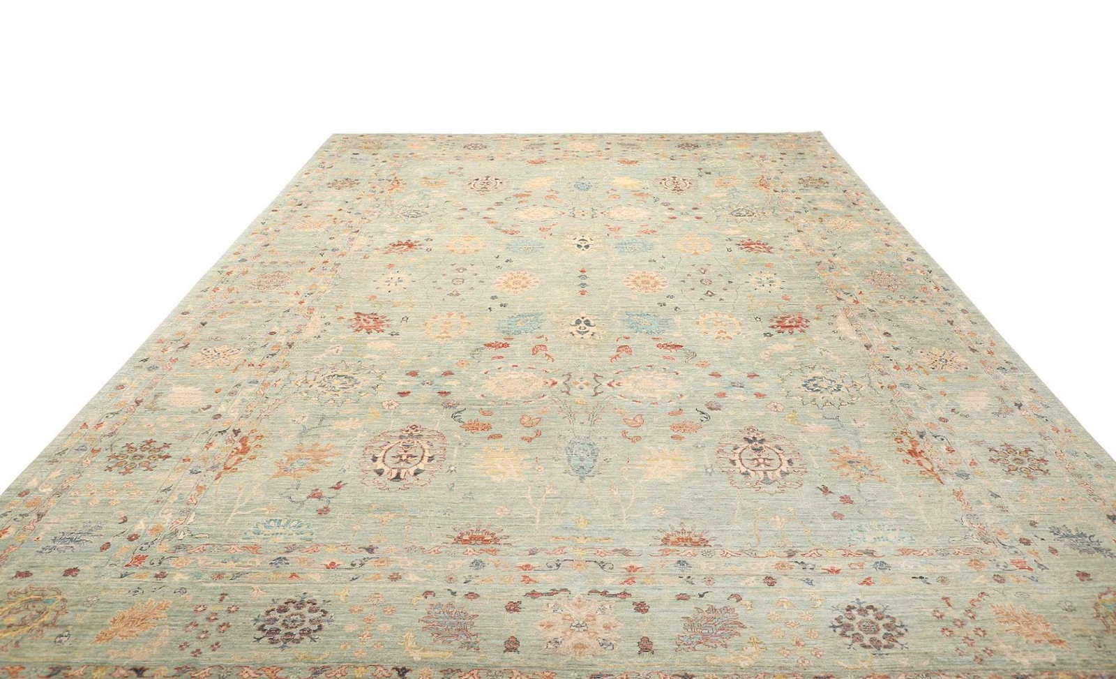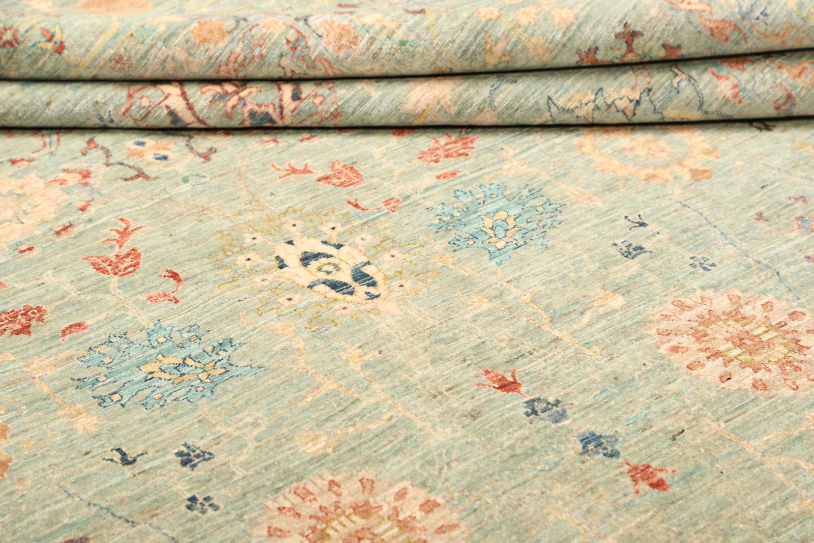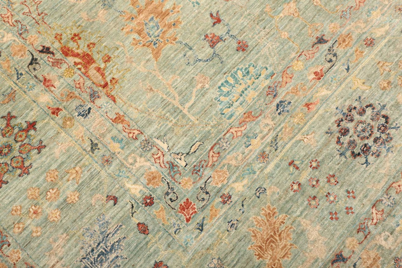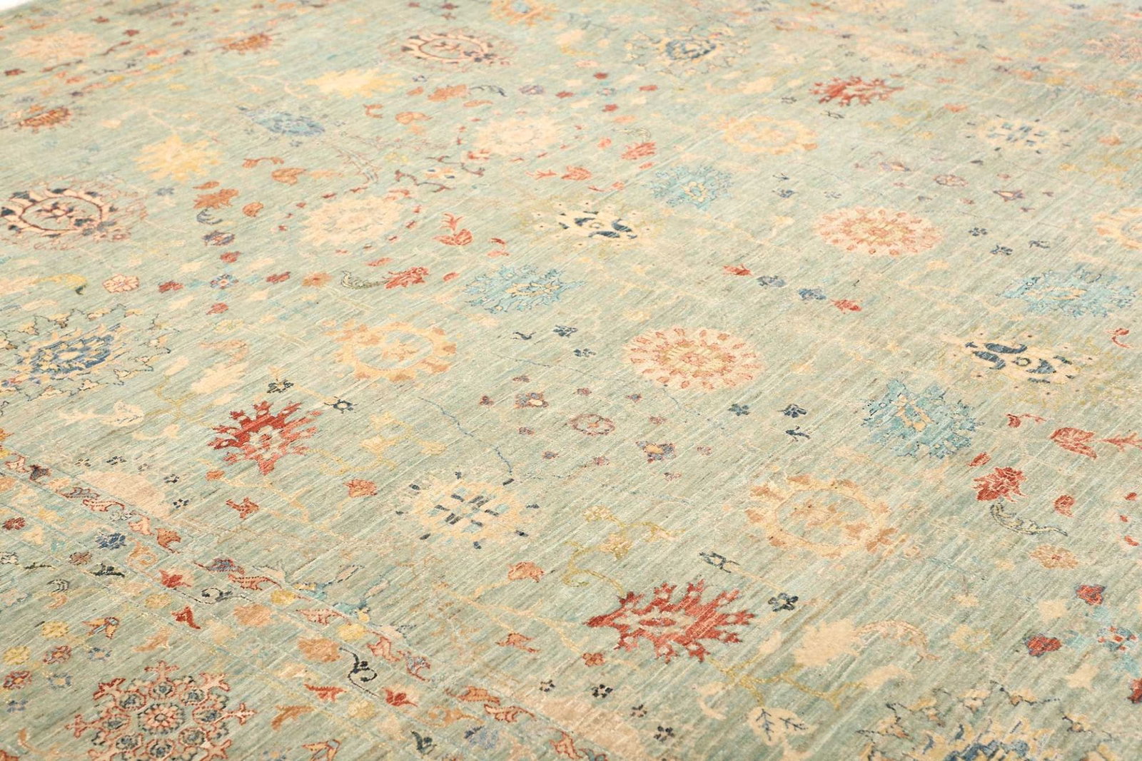 2605$ In den WarenkorbKlassischer Orientteppich Bochera – Hellgrün, 200×160 cm, handgeknüpft, Perserteppich