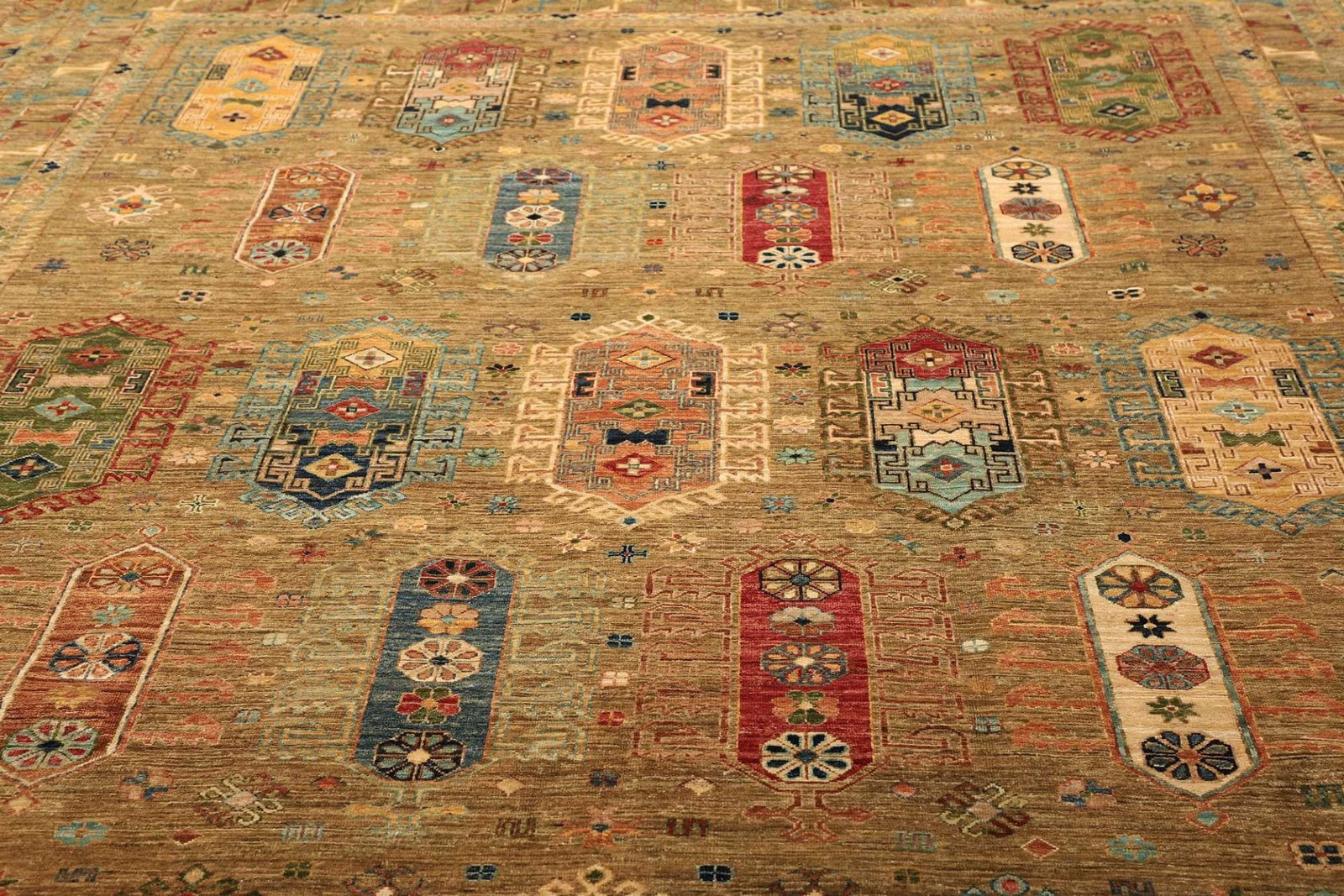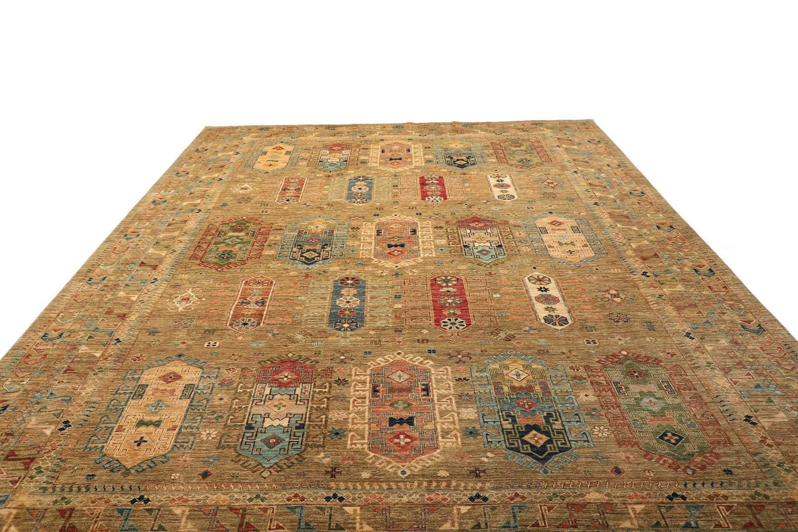 10777$Ursprünglicher Preis war: 10777$9671$Aktueller Preis ist: 9671$Samarkand Tribal Teppich | Knotendichte: ca. 200.000 Knoten/m² | Material: 100% Schurwolle | Kette: 100% Baumwolle | Größe: 277 x 370 cm | Zustand: Handgeknüpft, sehr gut | Ursprung: Samarkand, Pakistan | Florhöhe: ca. 5-7 mm
