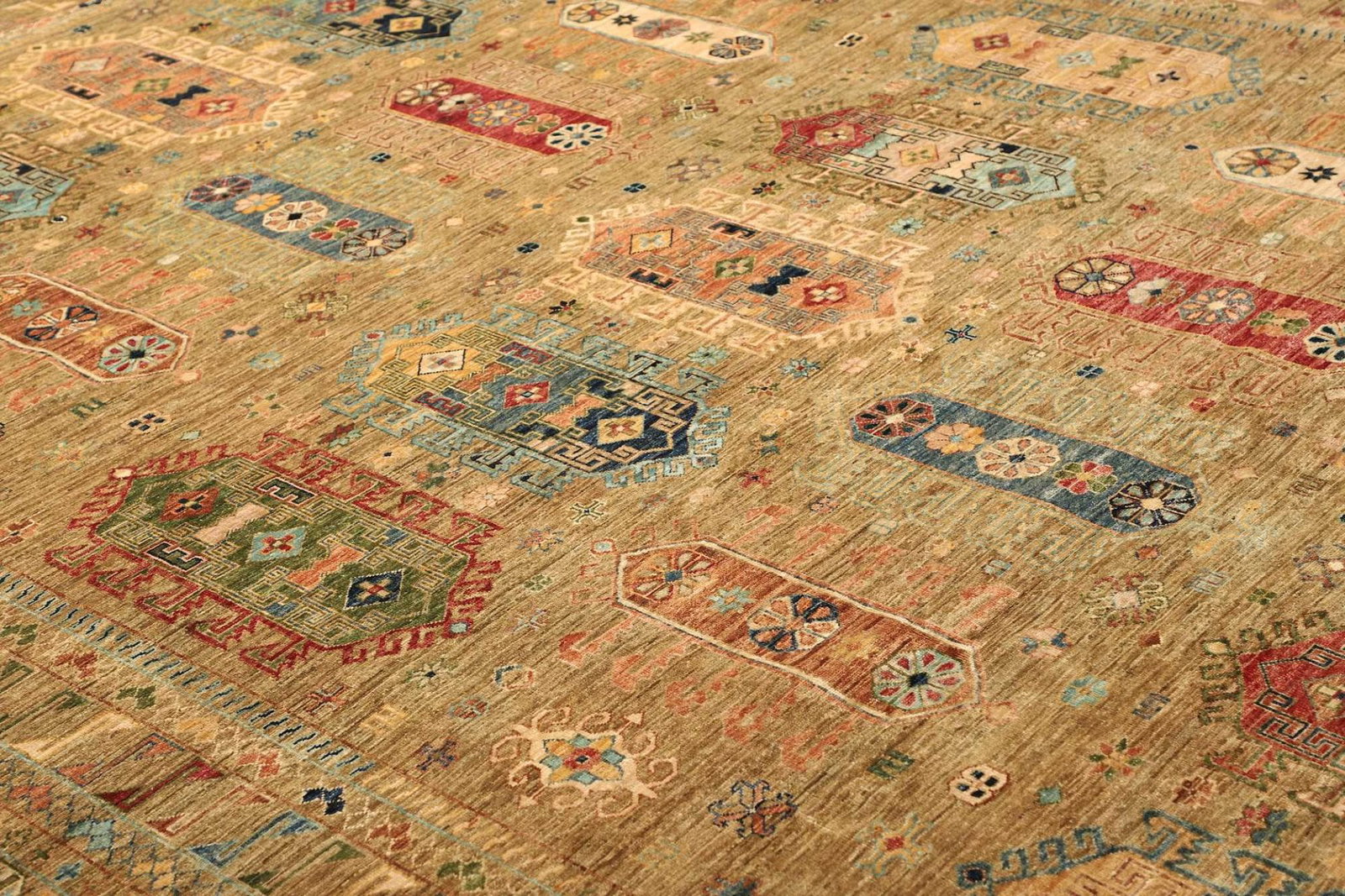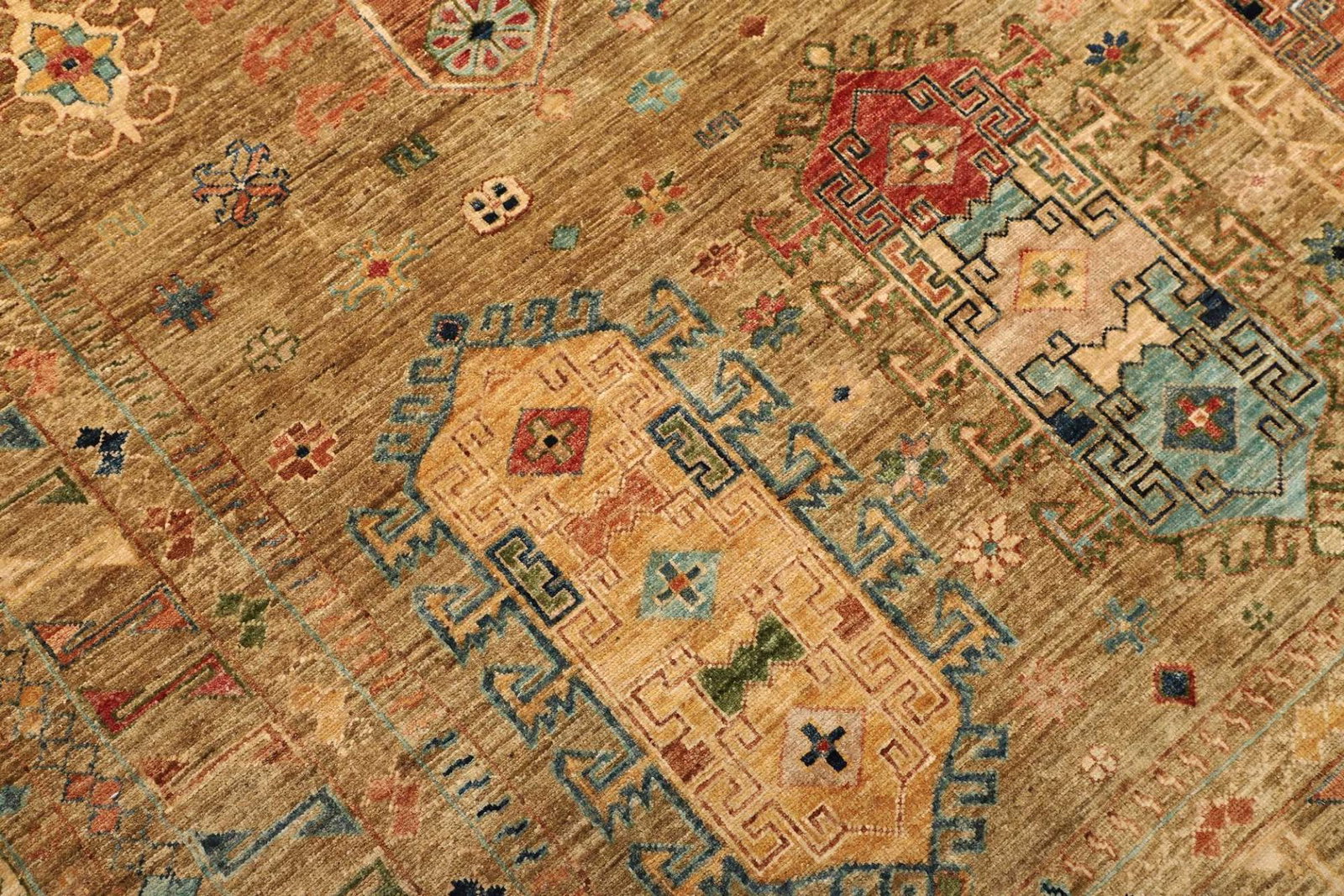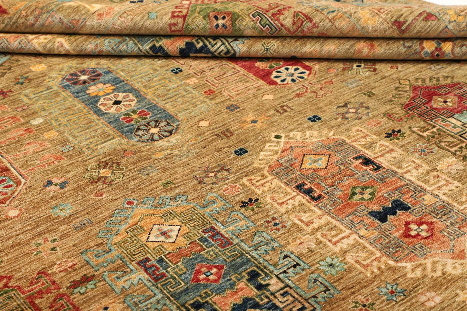 Der Orientteppich Samarkand wird aus feiner Schurwolle gefertigt, die für ihre weichheit und Langlebigkeit bekannt ist. Die Verwendung von Schurwolle sorgt dafür, dass der Teppich nicht nur warm und behaglich ist, sondern auch einen hohen Grad an Strapazierfähigkeit aufweist. Die handgeknüpfte Technik ermöglicht eine präzise Ausführung und sorgt für eine hohe Knotendichte, die für die Qualität und die Haltbarkeit des Teppichs entscheidend ist. Jedes Einzelstück entsteht in mühevoller Handarbeit, was zu einem unverwechselbaren Kunstwerk führt.