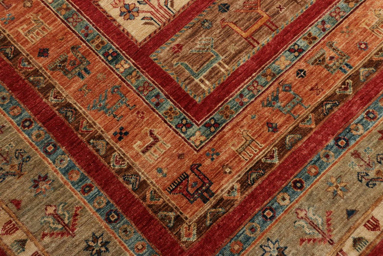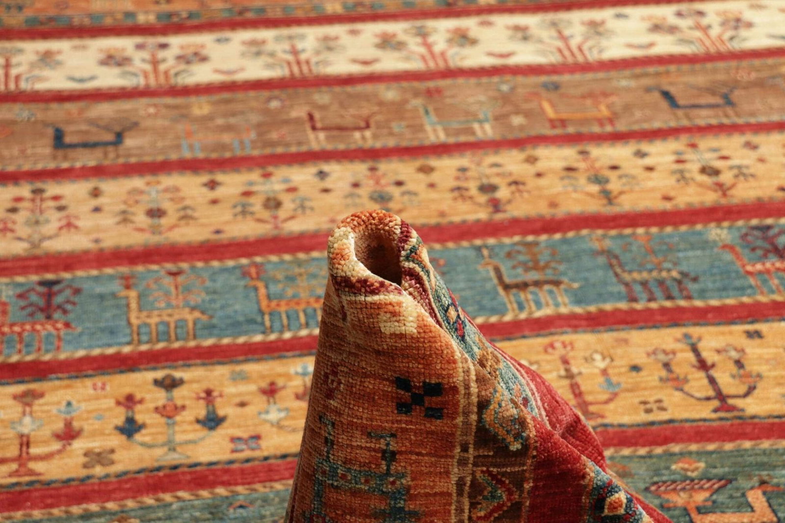 Der Samarkand Orientteppich besteht aus feiner Wolle, die mit Geschick und Hingabe zu einem edlen Teppich verarbeitet wurde. Wolle ist nicht nur für ihre Langlebigkeit bekannt, sondern bietet auch eine angenehme Haptik und Wärme. Die handgeknüpfte Technik, die für jeden Schritt der Produktion eingesetzt wird, verleiht dem Teppich eine hohe Knotendichte, die für seine Strapazierfähigkeit und Langlebigkeit sorgt. Jeder Knoten wurde sorgfältig platziert, was bedeutet, dass jeder Teppich ein Unikat ist und die Liebe zum Detail in der Herstellung sichtbar ist.