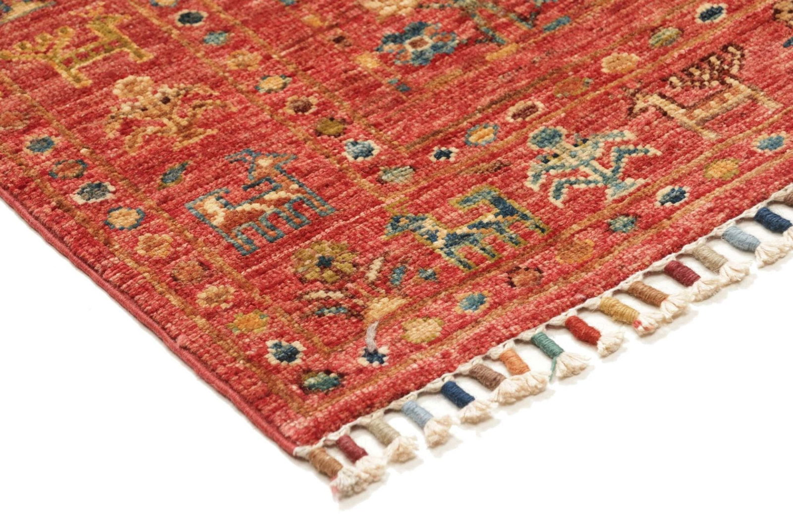 Die Knotendichte dieses Teppichs ist ein wesentlicher Faktor für seine Qualität. Eine hohe Knotendichte sorgt nicht nur für die Robustheit, sondern auch für die feinen Details im Muster, wodurch jedes Stück zu einem Unikat wird. Dieser handgeknüpfte Teppich hat die Fähigkeit, in verschiedenen Wohnstilen – sei es modern oder traditionell – zur Geltung zu kommen und eine warme Atmosphäre zu schaffen.