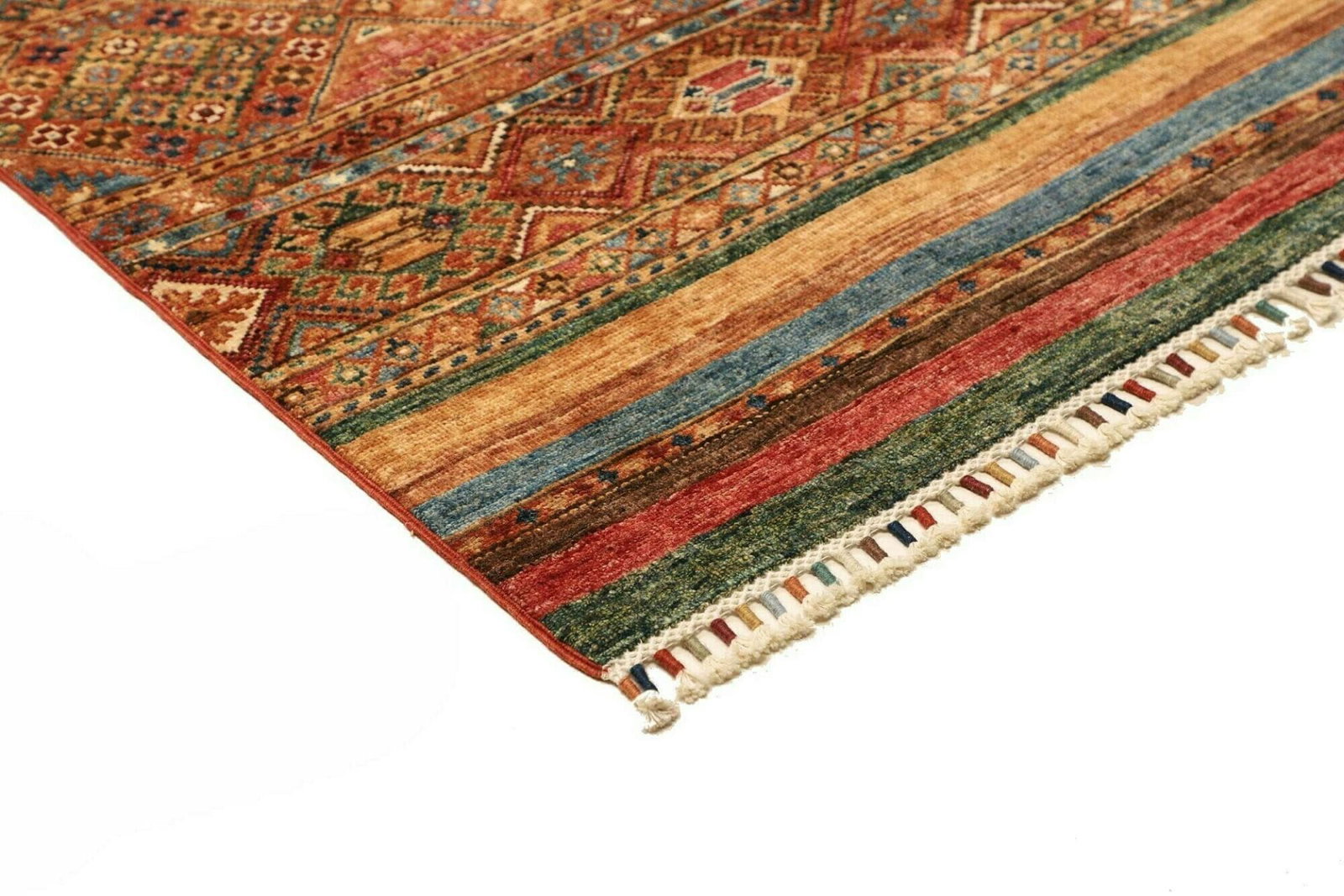 Der Orientteppich Samarkand ist nicht nur ein praktisches Wohnaccessoire, sondern auch ein faszinierendes Kunstwerk. Die Muster orientieren sich an traditionellen Designs, die sowohl geometrische als auch florale Elemente enthalten. Solche Motive haben oft eine tiefere Bedeutung und verkörpern Werte wie Glück, Frieden und Wohlstand. Die Farben sind harmonisch aufeinander abgestimmt und zeichnen sich durch ihre Leuchtkraft und Intensität aus, die typisch für Samarkand-Teppiche sind.