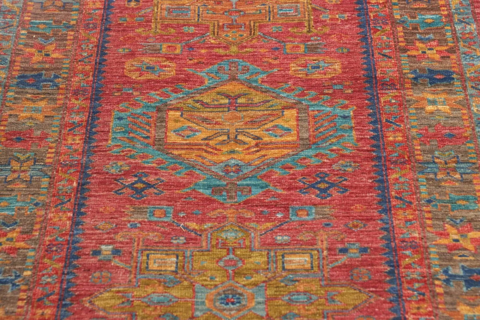 2229$Ursprünglicher Preis war: 2229$1840$Aktueller Preis ist: 1840$Samarkand Tribal Teppich | Knotendichte: ca. 200.000 Knoten/m² | Material: 100% Schurwolle | Größe: 82 x 298 cm | Zustand: Neu | Herkunft: Pakistan | Handgeknüpft | Florhöhe: ca. 5-7 mm