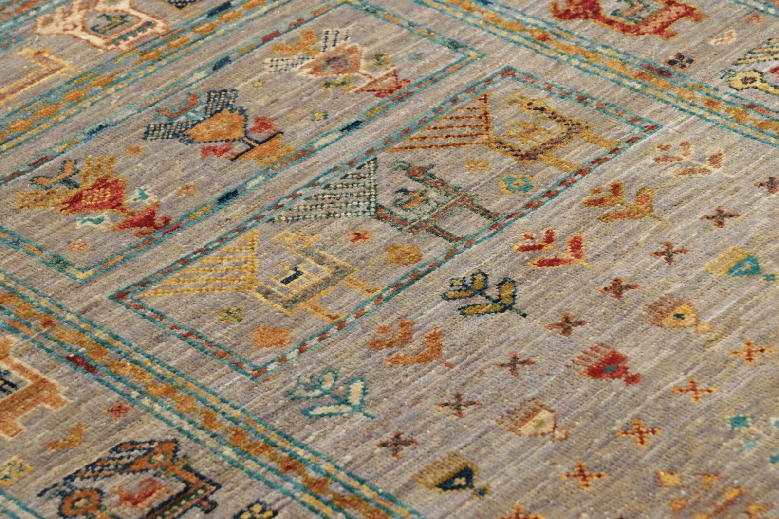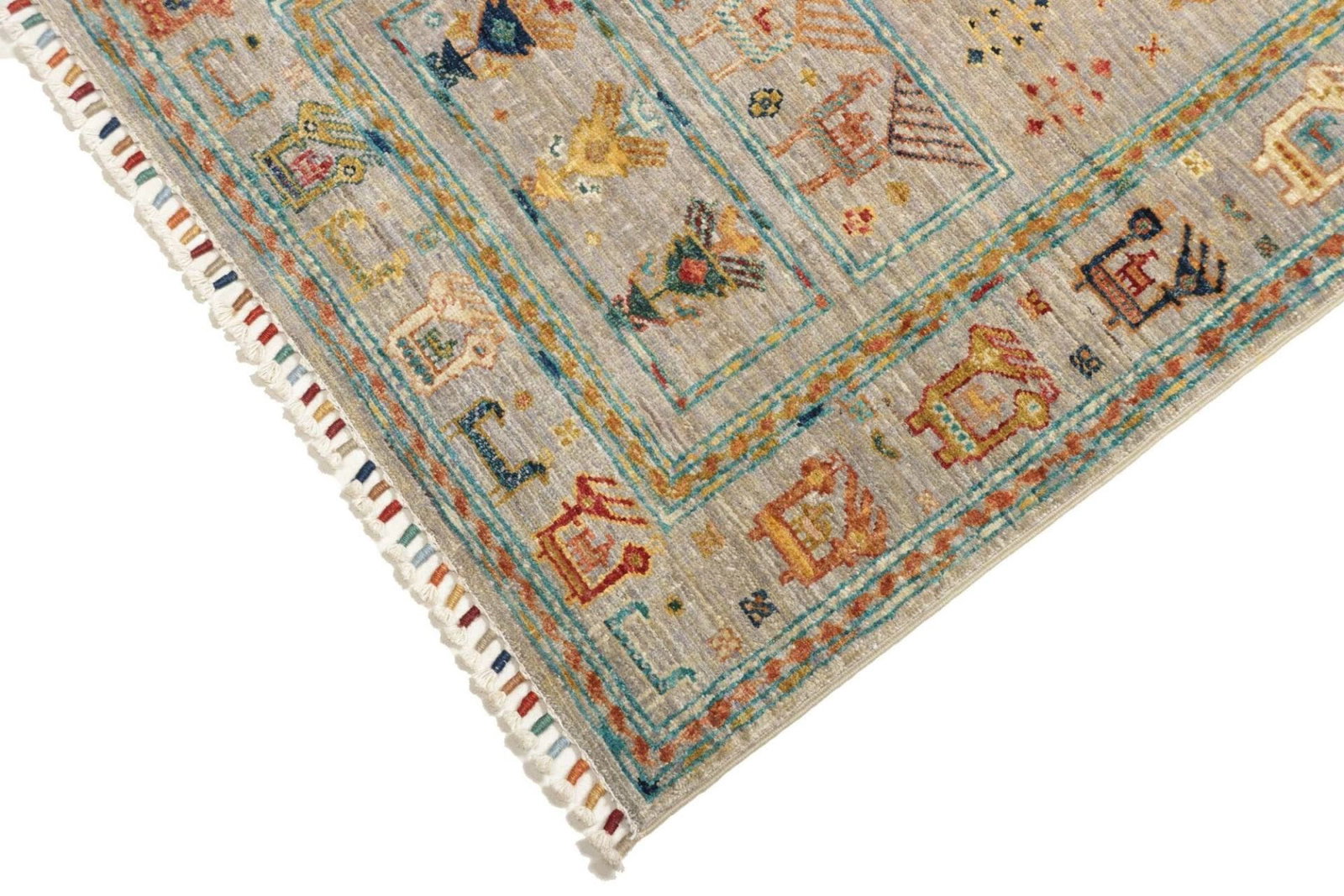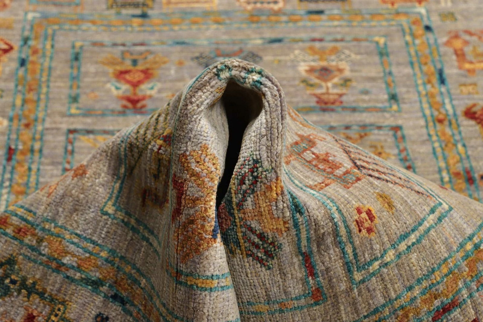 Der Orientteppich Samarkand zeichnet sich durch ein beeindruckendes Muster aus, das sowohl traditionelle als auch moderne Elemente umfasst. Die fröhlichen Farben und das harmonische Design machen diesen Teppich zu einem Blickfang in jedem Raum. Orientteppiche sind nicht nur Bodenbeläge, sondern auch Kunstwerke, die Geschichten erzählen und den Charakter eines Raumes bereichern.