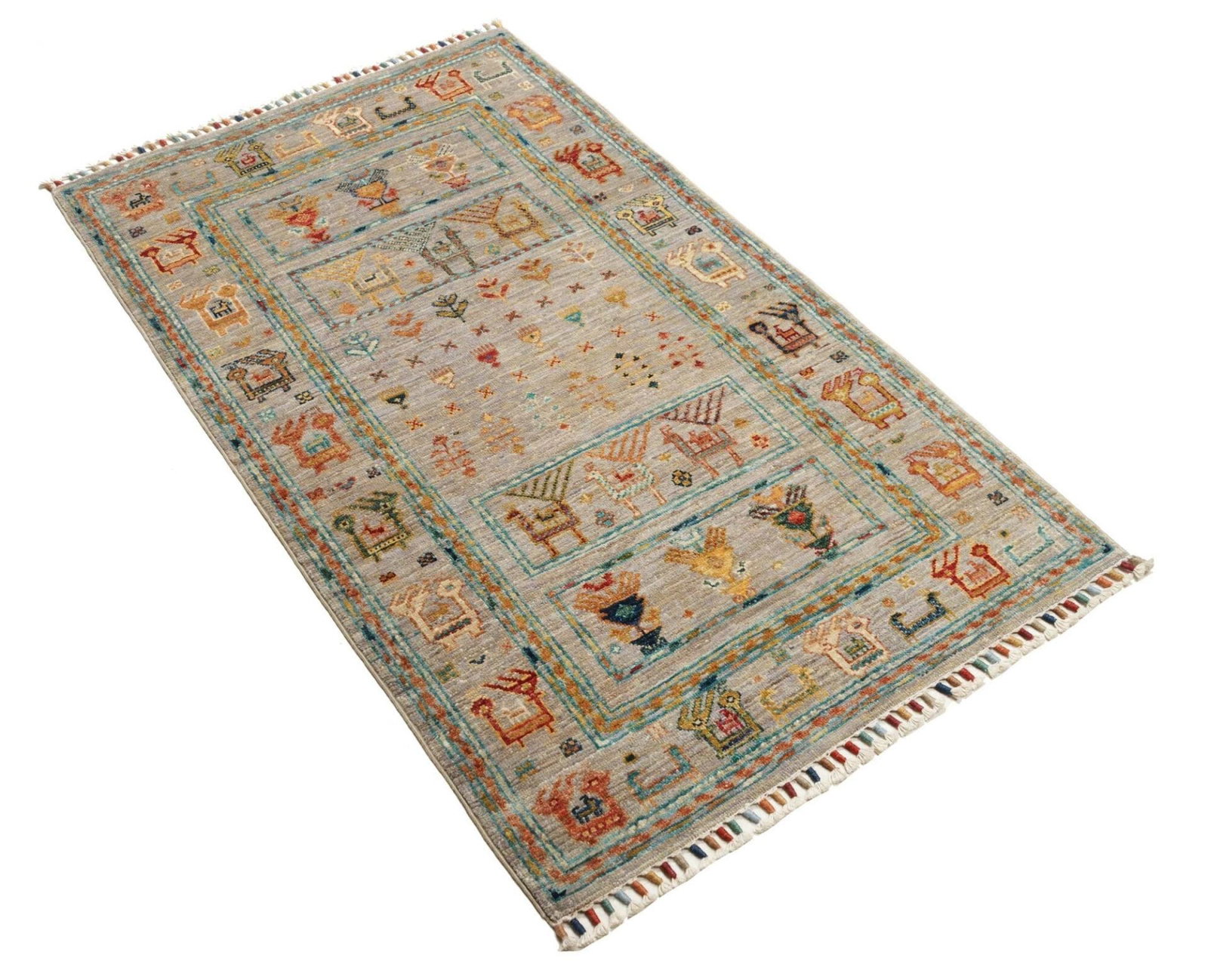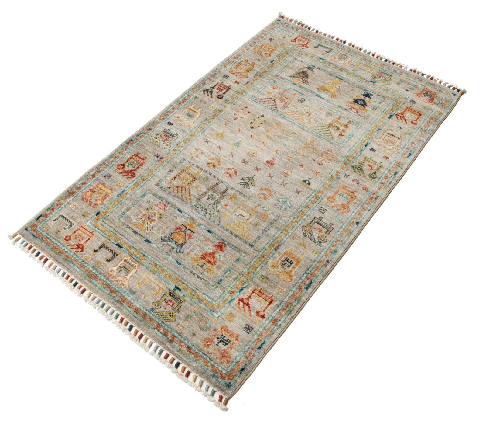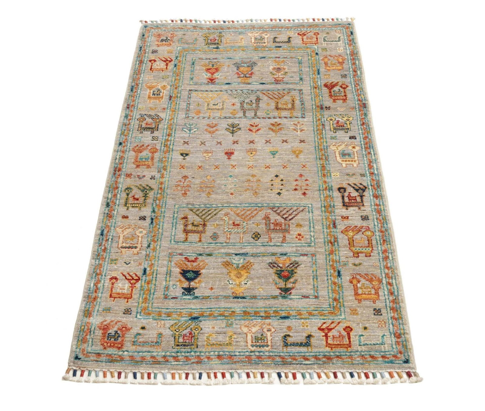 Der Orientteppich Samarkand zeichnet sich durch ein beeindruckendes Muster aus, das sowohl traditionelle als auch moderne Elemente umfasst. Die fröhlichen Farben und das harmonische Design machen diesen Teppich zu einem Blickfang in jedem Raum. Orientteppiche sind nicht nur Bodenbeläge, sondern auch Kunstwerke, die Geschichten erzählen und den Charakter eines Raumes bereichern.