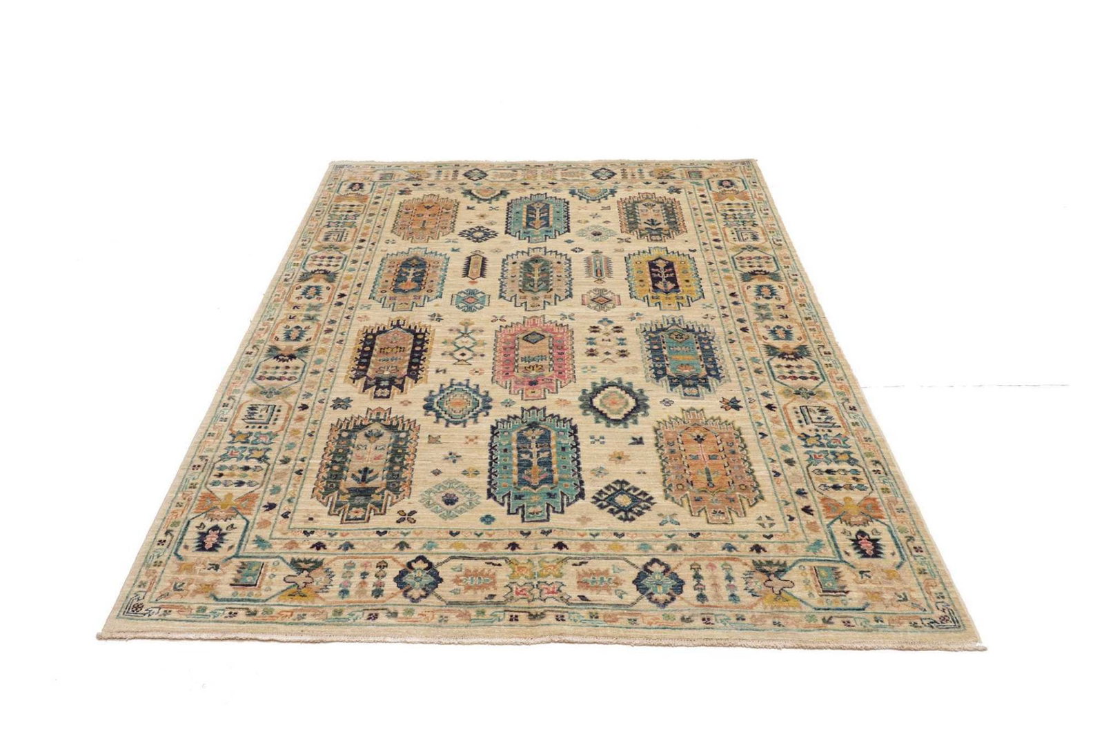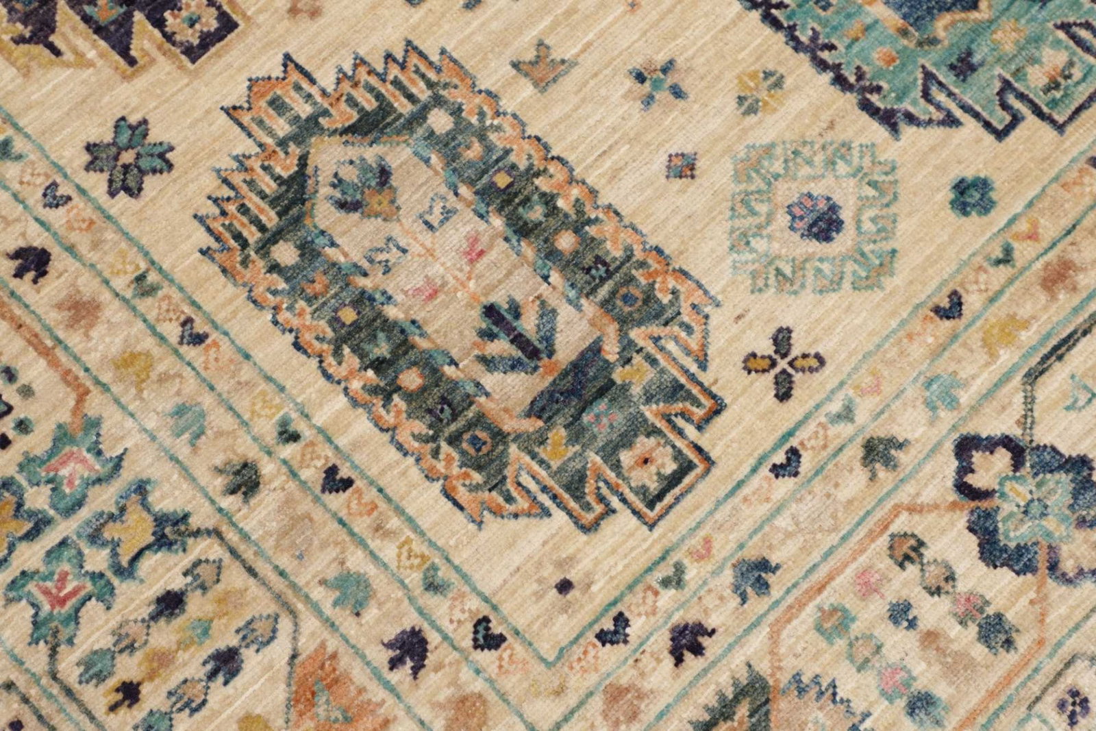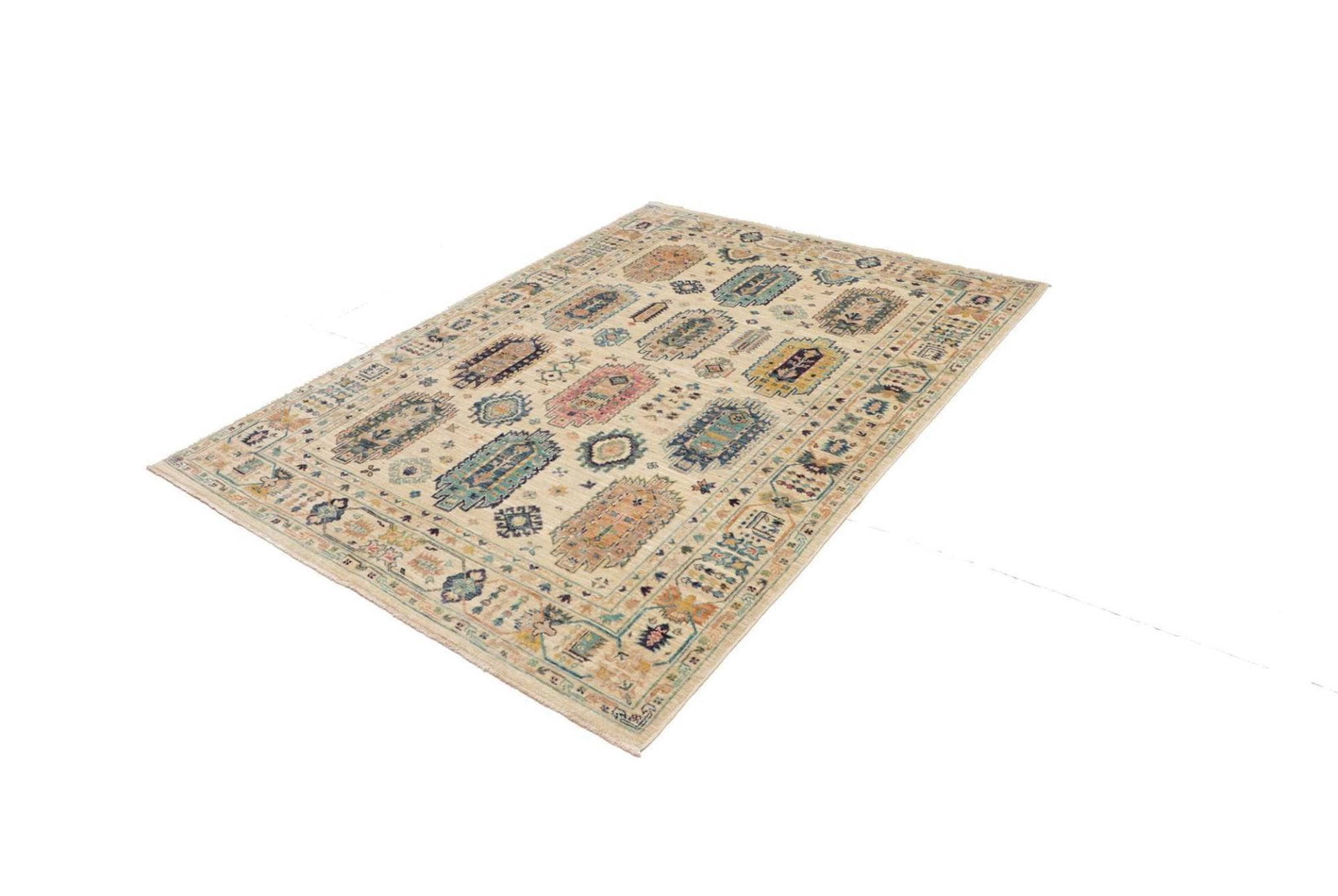 Samarkand Tribal Teppich | Größe: 150 x 201 cm | Knotendichte: ca. 200.000 Knoten/m² | Flor: 100% Schurwolle | Kette: 100% Baumwolle | Herkunft: Pakistan | Zustand: Handgeknüpft und langlebig