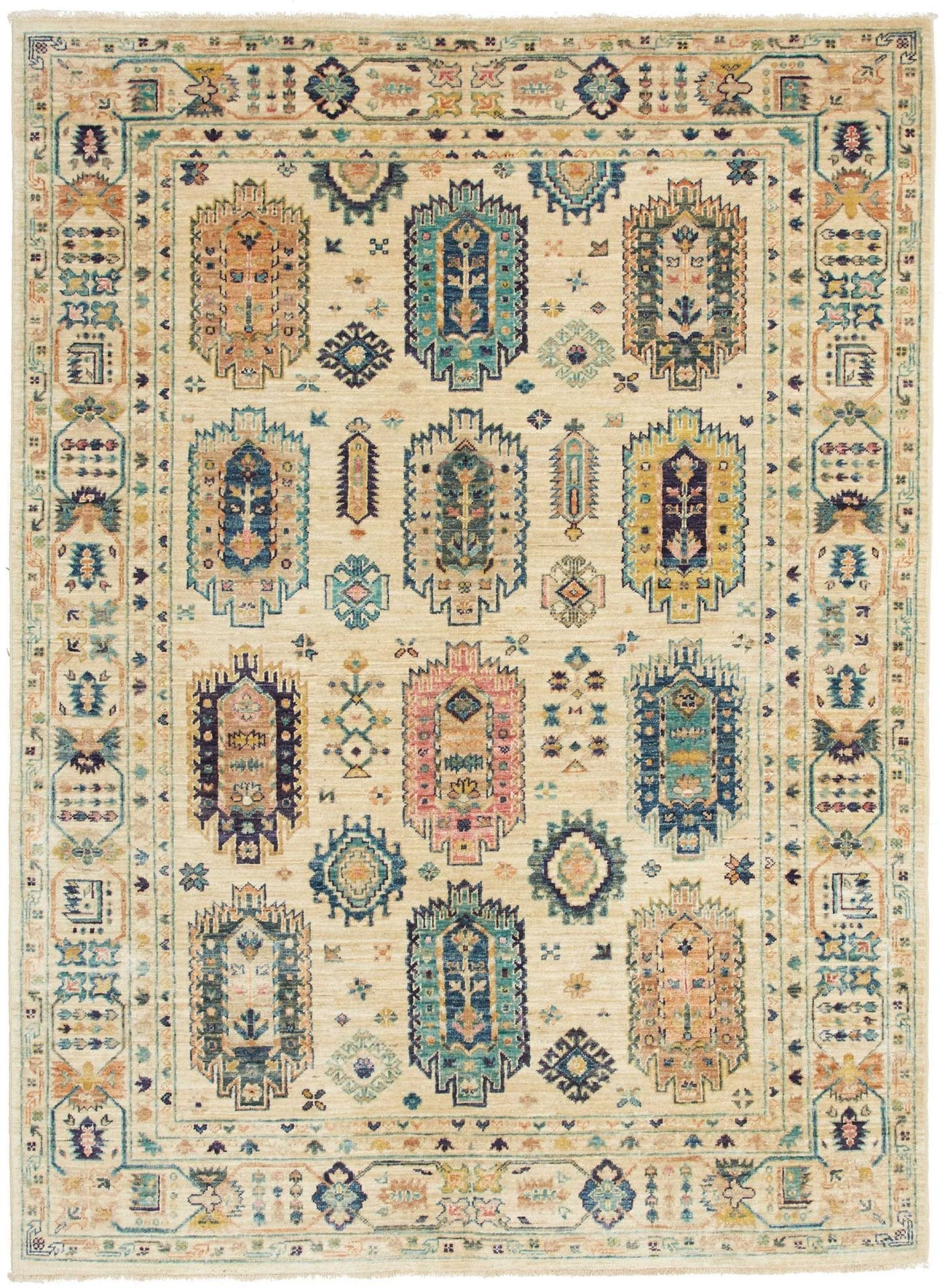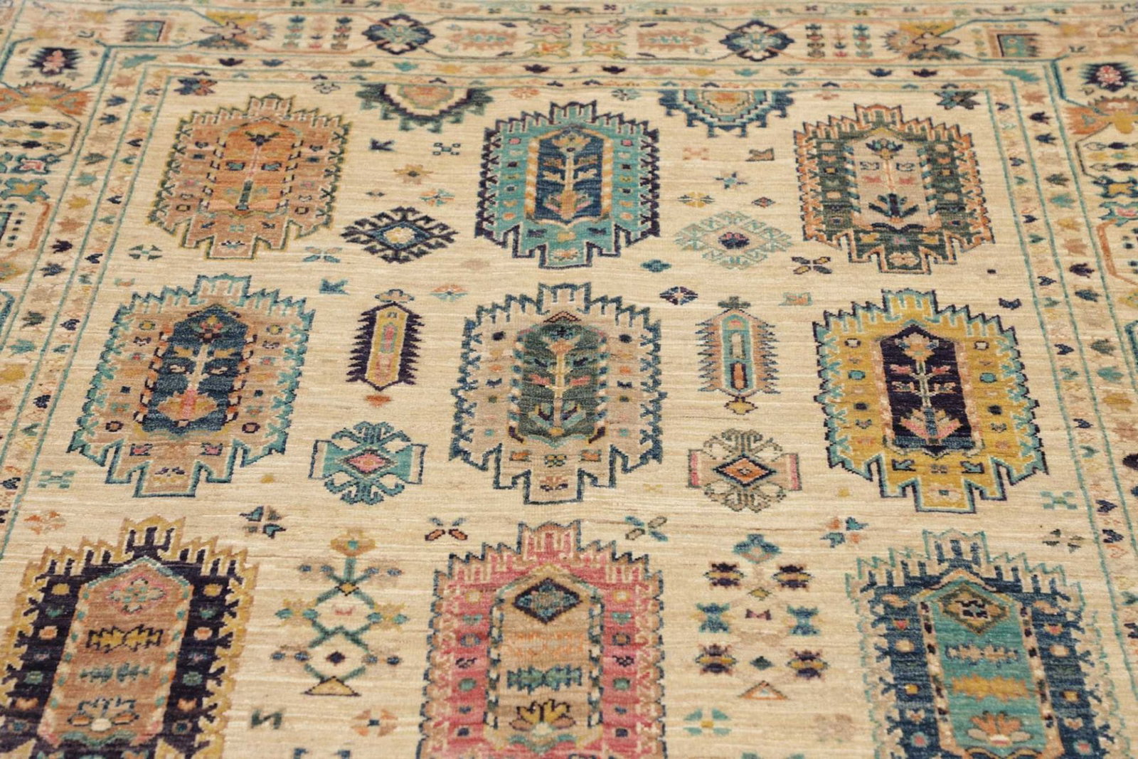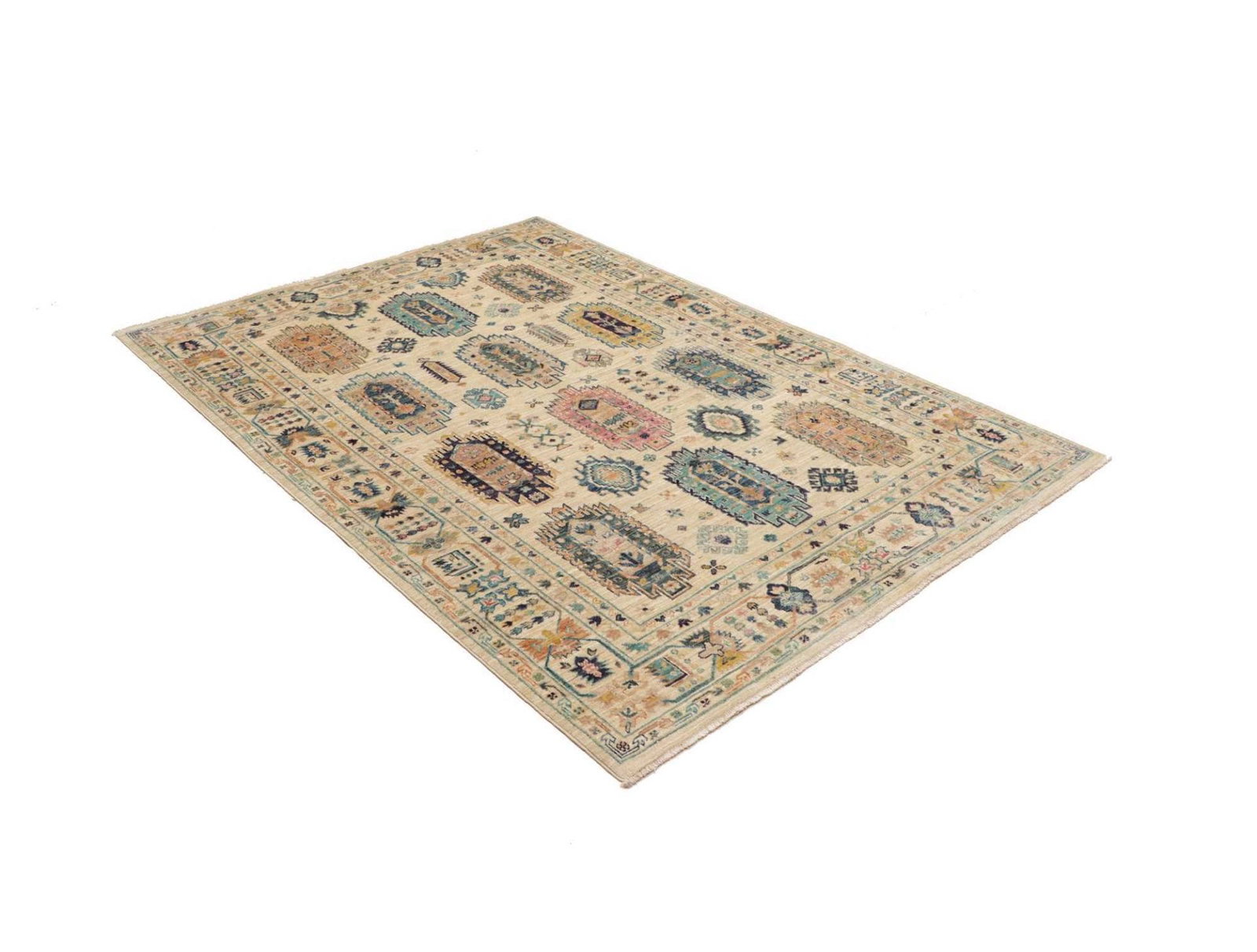 Samarkand Tribal Teppich | Größe: 150 x 201 cm | Knotendichte: ca. 200.000 Knoten/m² | Flor: 100% Schurwolle | Kette: 100% Baumwolle | Herkunft: Pakistan | Zustand: Handgeknüpft und langlebig