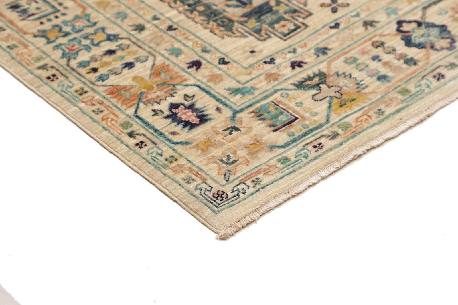 Die handgeknüpfte Herstellungsweise macht jeden Teppich zu einem Unikat. Die traditionelle Knotentechnik, kombiniert mit den hochwertigen Materialien, garantiert, dass dieser Teppich nicht nur schön, sondern auch funktional ist. Die Strapazierfähigkeit der Wolle sorgt dafür, dass der Teppich auch in stark frequentierten Bereich gut zur Geltung kommt und lange Freude bereitet.