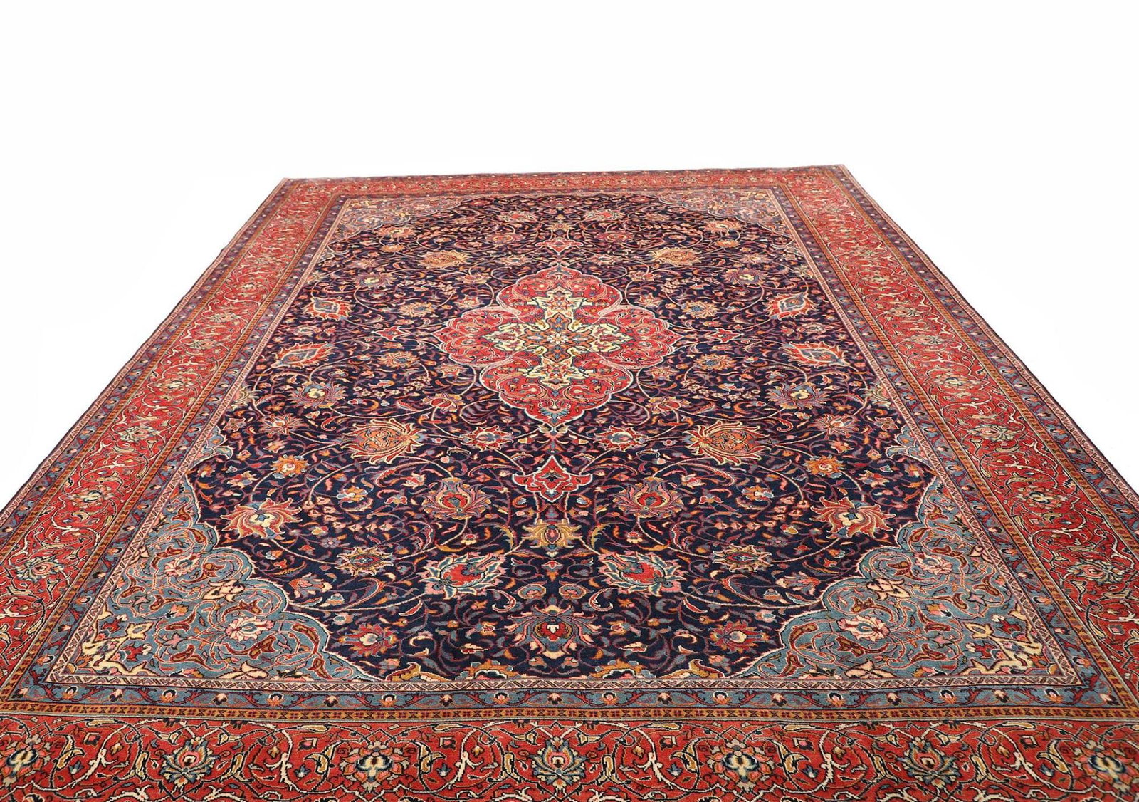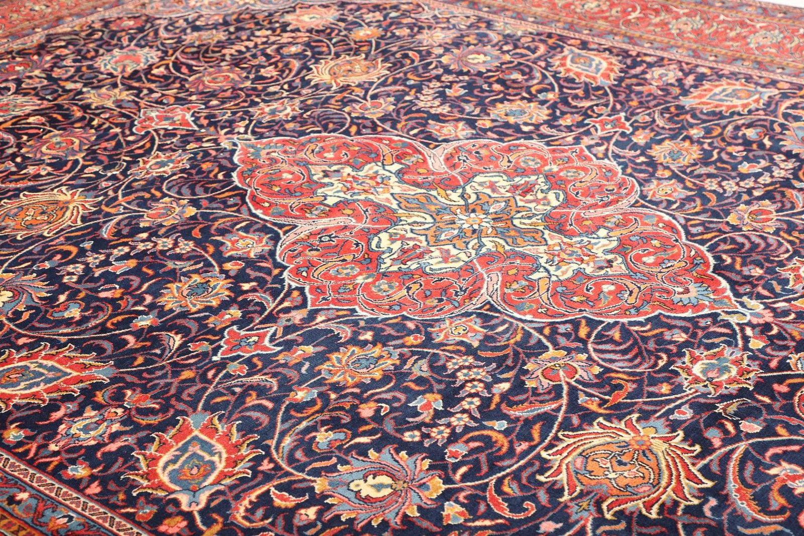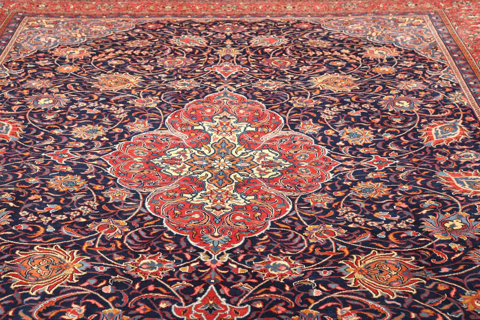 Der Teppich stammt aus der iranischen Region Farahan, die berühmt für ihre handgeknüpften Perserteppiche mit komplexen Mustern und lebendigen Farben ist.