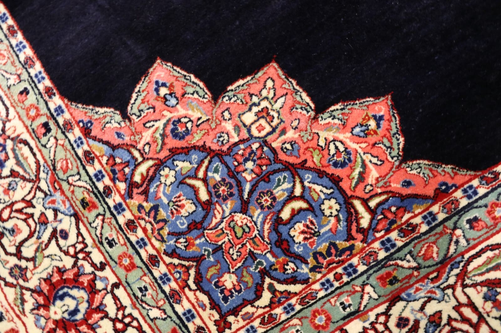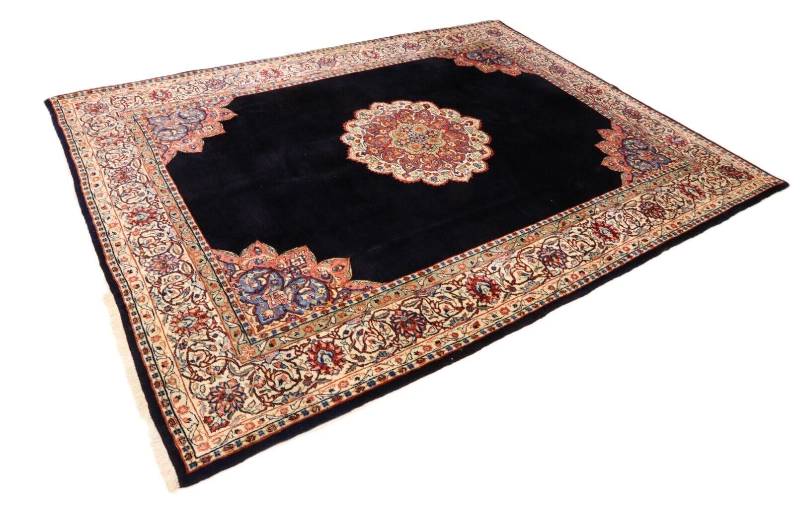 Orientteppich super Sarough | Knotendichte: 250.000 Knoten/m² | Material: 100% Korkwolle und 100% Baumwolle | Größe: 317×241 cm | Zustand: Neu und unbenutzt | Herkunft: Persien, Provinz Sarough | Verarbeitung: handgeknüpft | Besonderheit: Für Fußbodenheizung geeignet | Stil: Traditionell Orientalisch/Persisch
