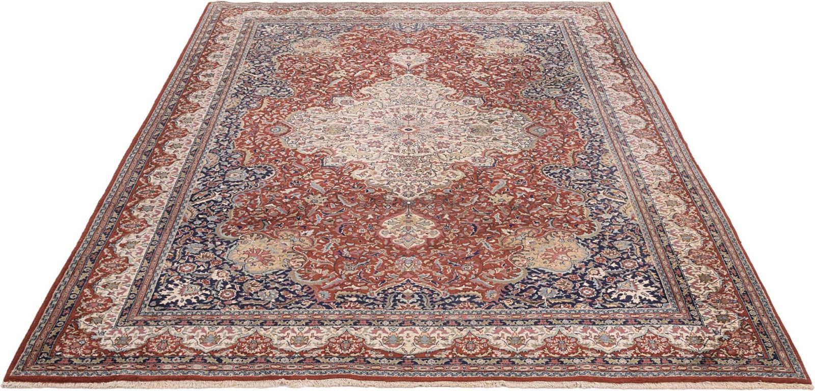 Der Sarouk-Teppich stammt ursprünglich aus der gleichnamigen Region in Iran, die bekannt ist für ihre hervorragenden Teppichknüpftechniken und die verwendeten lebendigen Farben. Die Teppichtradition in dieser Region reicht bis ins 19. Jahrhundert zurück, als die Minarett- und Palastbauten in Persien florierten und Teppiche oft auch als Statussymbole galten. Sarouk-Teppiche sind für ihre harmonische Farbpalette und die markanten floralen Muster bekannt, die häufig das atemberaubende Handwerk der persischen Teppichkunst reflektieren.