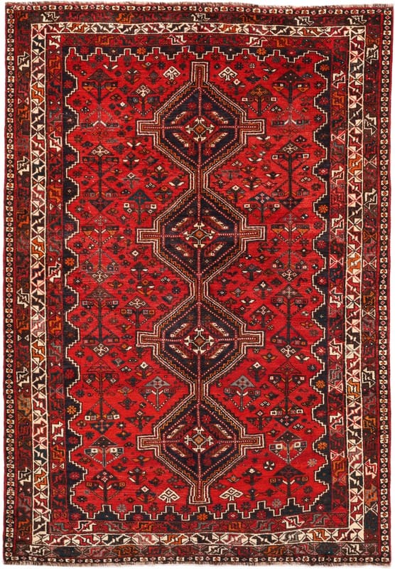 Traditioneller Shiraz Teppich | Knotendichte: 128.000 – 160.000 Knoten/m² | Material: Hochwertige Wolle | Größe: 264×183 cm | In neuzeitlichem Zustand | Herkunft: Iran/Persien | Farbe: Rot/Orange | Form: Rechteckig | Gewicht: ca. 16 kg | Dicke: ca. 10 mm | Handgeknüpft