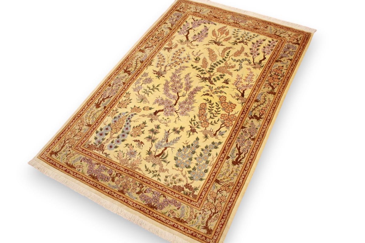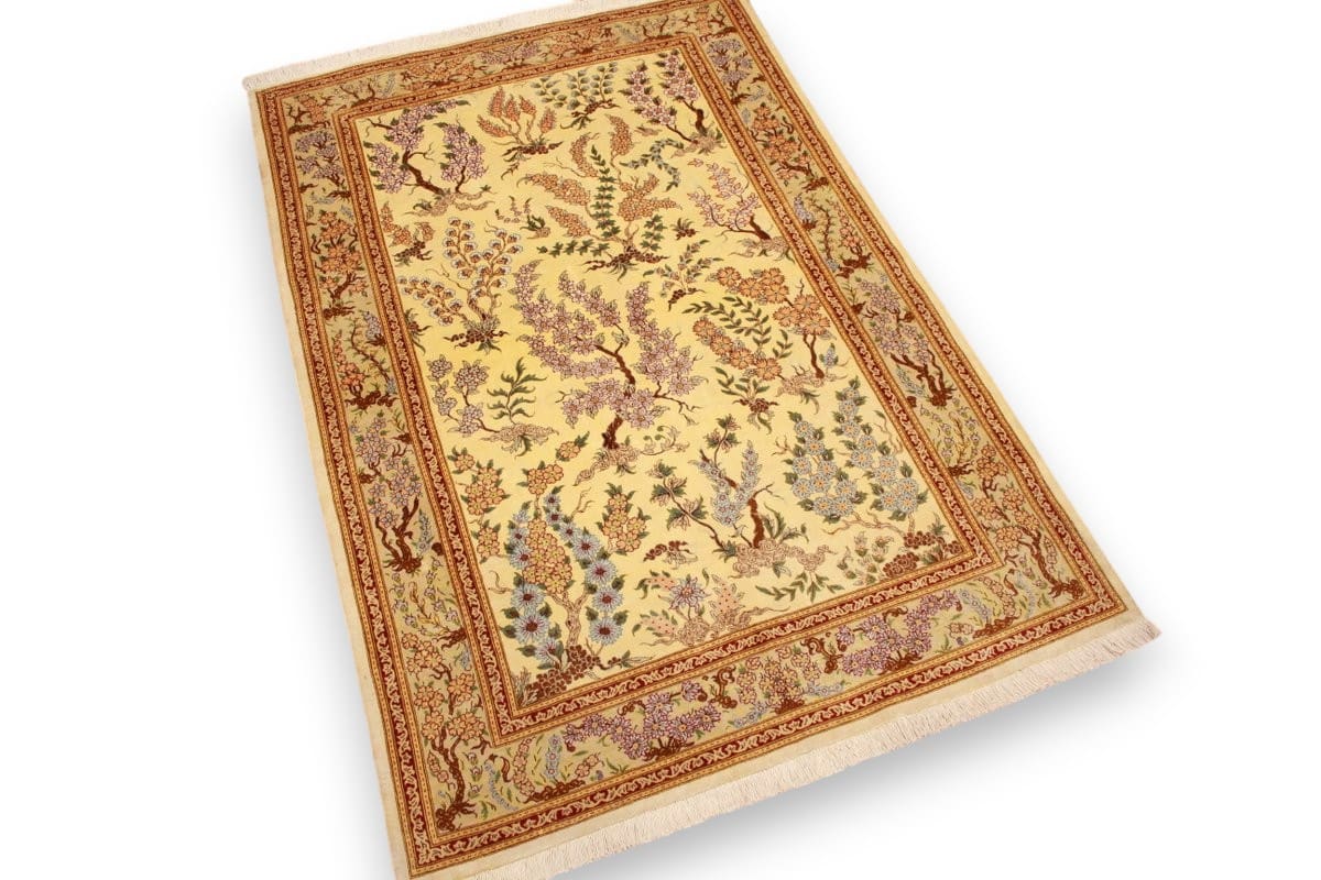 Orientteppich Seidenteppich Ghom 150×97 cm Beige, handgeknüpft