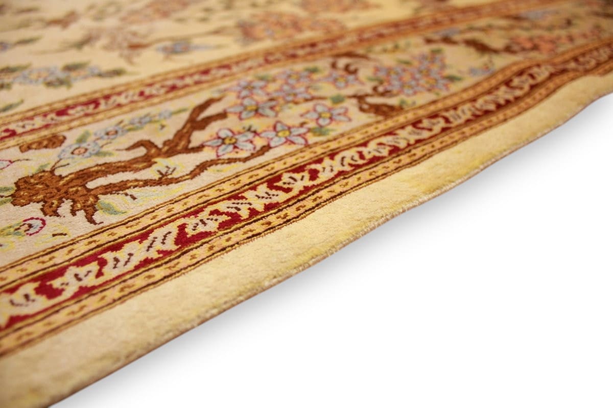Der Orientteppich Seidenteppich Ghom ist mehr als nur ein Teppich; er ist ein Stück Geschichte und Kunst, das Ihnen die Kultur des Orients näherbringt. Seine erstklassige Verarbeitung, die Tradition der Region und sein beeindruckendes Design machen ihn zu einer wertvollen Ergänzung für jedes Zuhause.