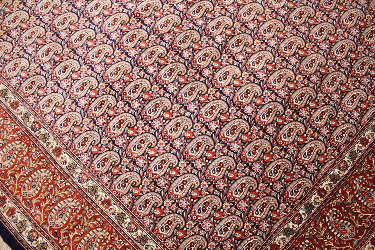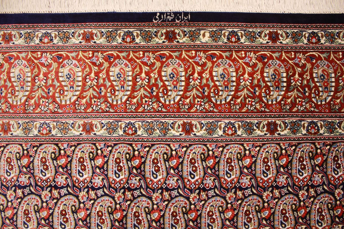 Der Ghom-Teppich stammt aus der Stadt Qom im Iran, die für ihre langjährige Tradition in der Teppichknüpfung bekannt ist. Qom hat sich einen Namen gemacht, indem es einige der schönsten und kunstvollsten Teppiche des Landes produziert. Diese Region ist berühmt für ihre Spiritualität und ihre religiösen Stätten, entsprechend spiegelt sich auch im Design der Teppiche oft eine tiefe Symbolik wider. Die Kunst des Teppichknüpfens in Ghom hat eine Geschichte, die Hunderte von Jahren zurückreicht und oft mit religiösen und kulturellen Motiven verbunden ist.