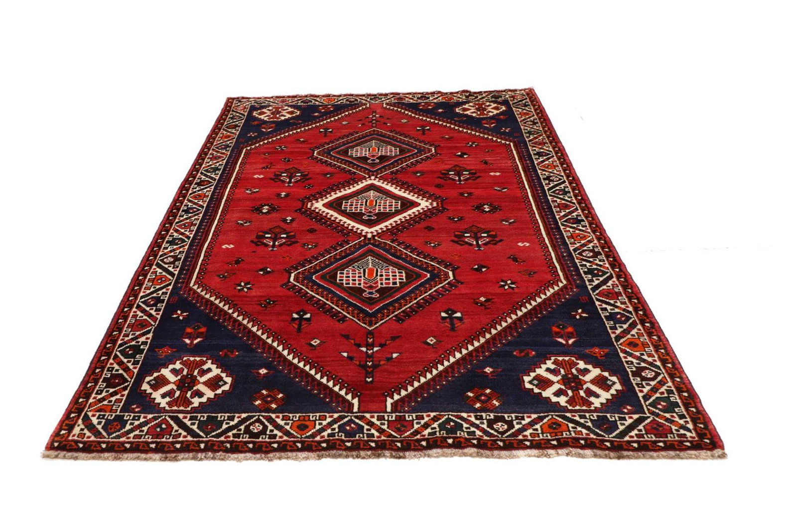 Handgeknüpfter Shiraz Teppich | Knotendichte: ca. 200.000 Knoten/m² | Material: 100% Schurwolle | Größe: 163×233 cm | Herkunft: Iran | Muster: Geometrisch | Zustand: Sehr gut