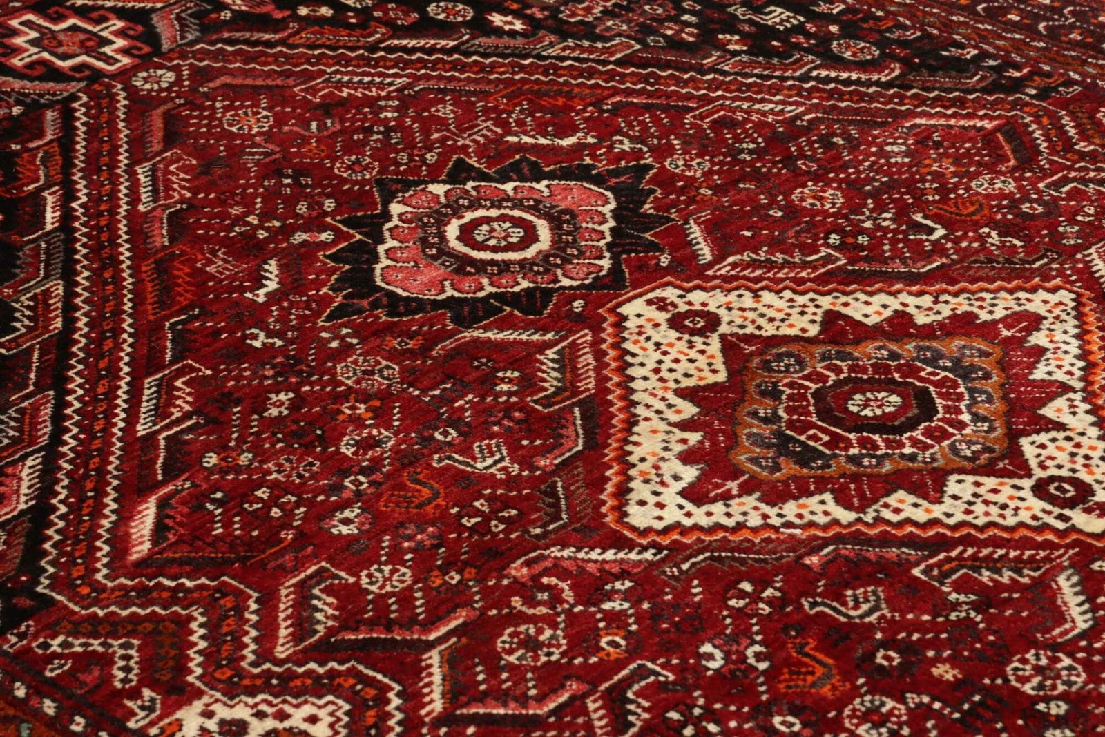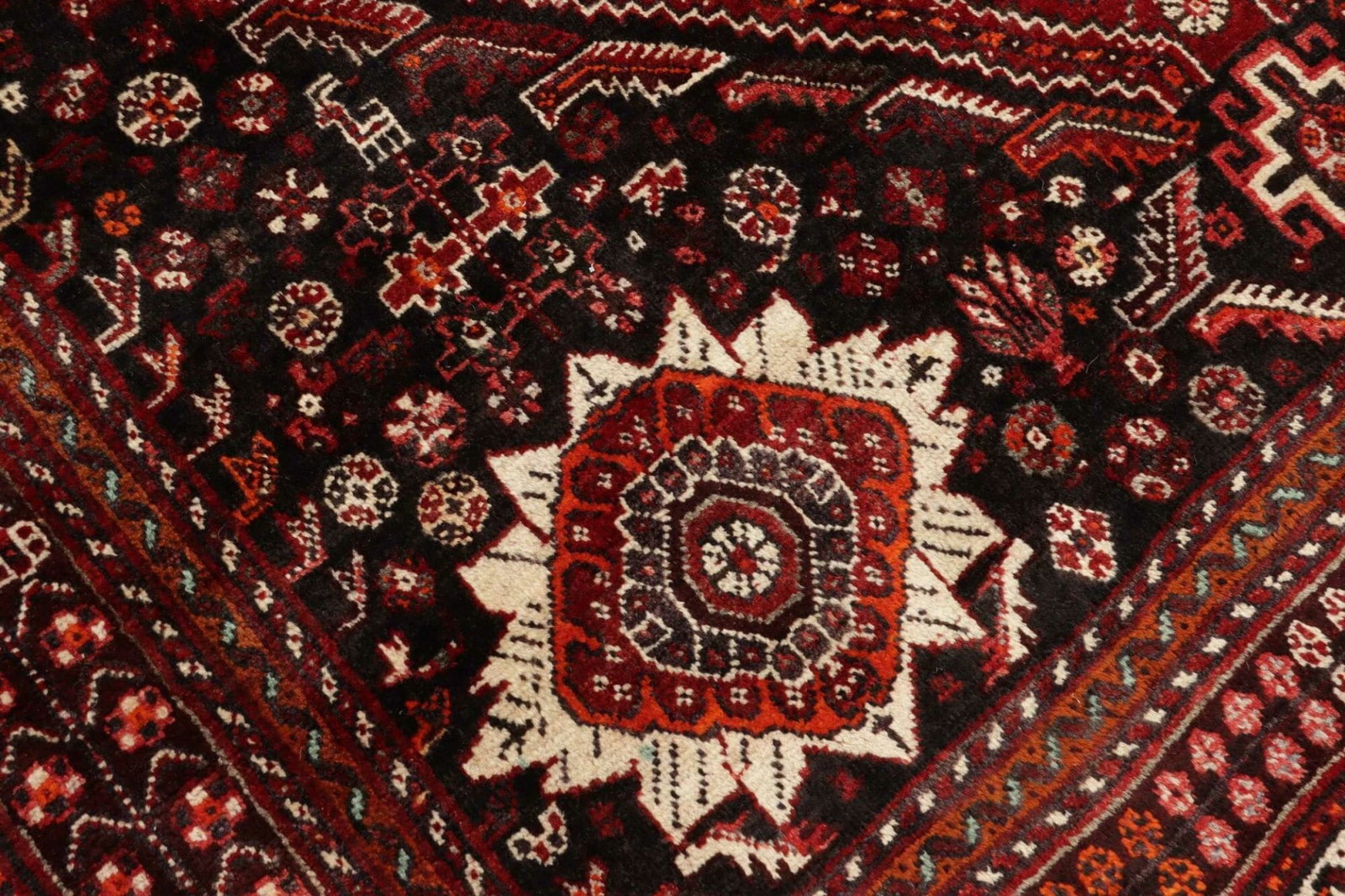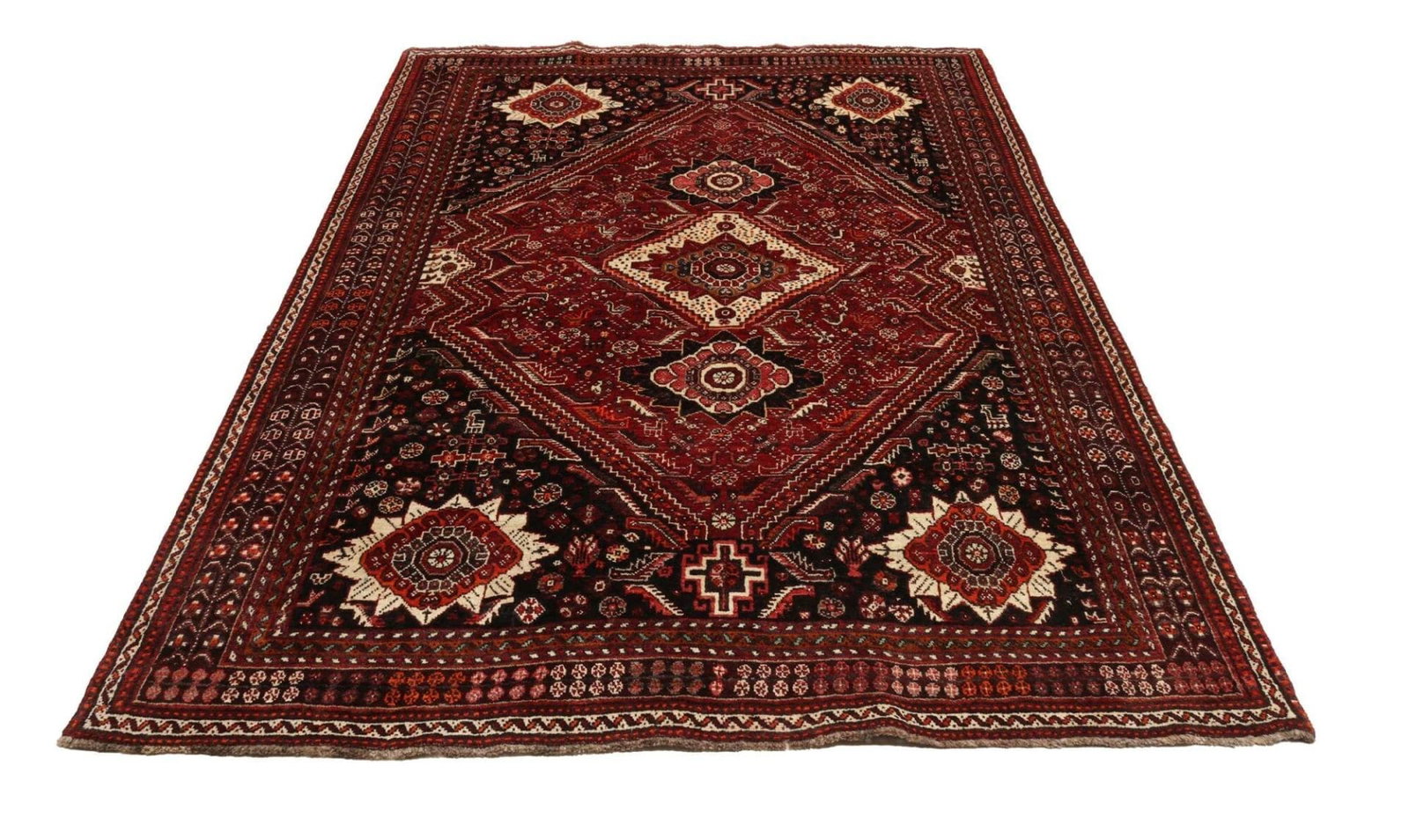 Schwarze, rote und grüne Farbtöne sind häufig in den Design-Elementen zu finden, die in der Teppichtradition von Shiraz jeweilige kulturelle sowie religiöse Bedeutung haben. Diese Teppiche sind nicht nur traditionelle Handwerksstücke, sondern auch Ausdruck der Identität der Menschen, die sie herstellen.