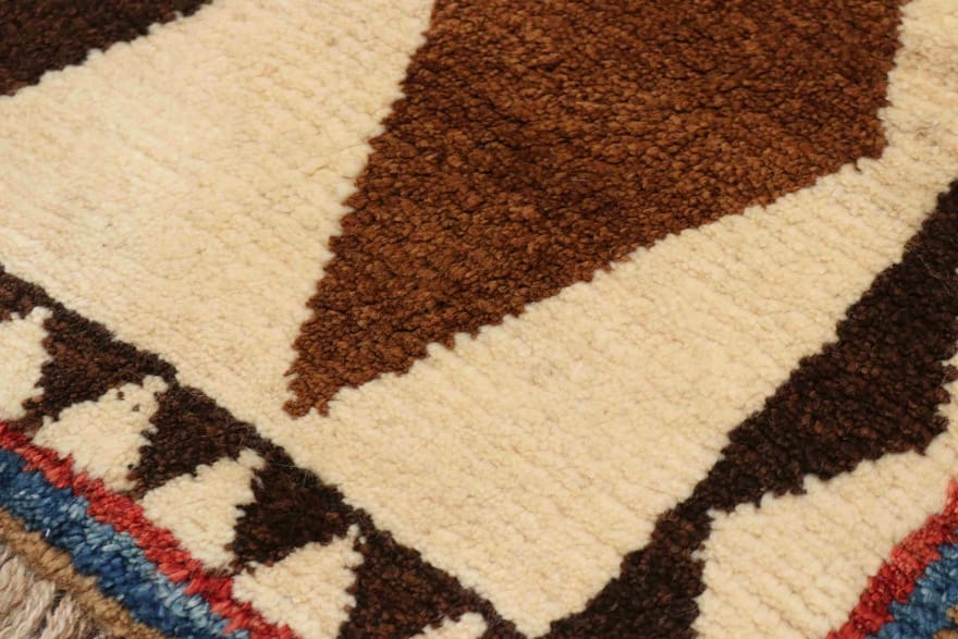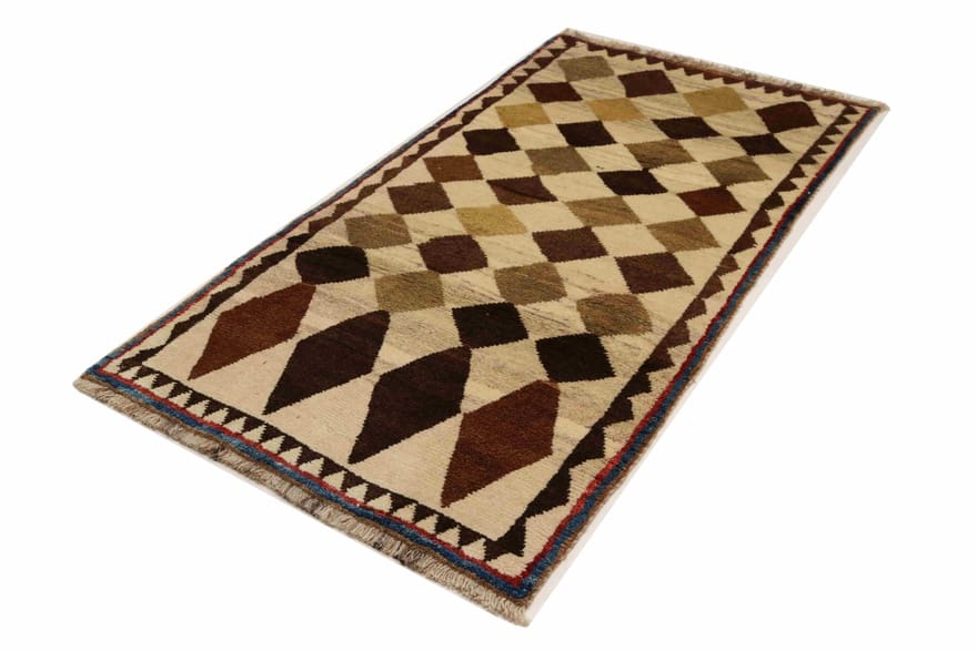 Handgeknüpfter Kaschgai Teppich | Knotendichte: 90.000 Knoten/m² | Material: Wolle | Größe: 198×106 cm | Farbe: Braun/Gelb | Zustand: Neuzeitlich (0-20 Jahre) | Ursprung: Iran/Persien | Dicke: ca. 10 mm | Gewicht: ca. 8 kg