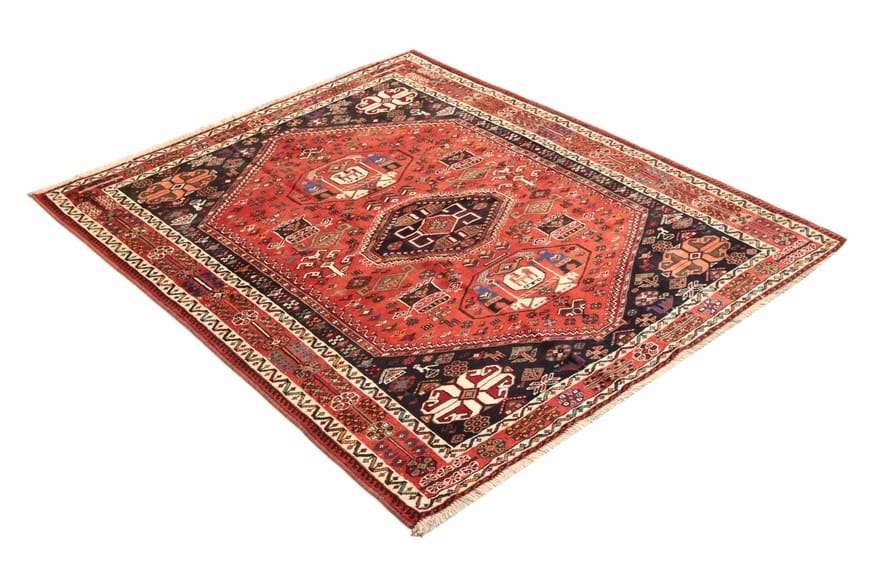 Handgeknüpfter Shiraz-Teppich | Knotendichte: 90.000 Knoten/m² | Material: Wolle | Größe: 216×174 cm | Farbe: Rot/Orange | Zustand: Neu | Form: Rechteckig