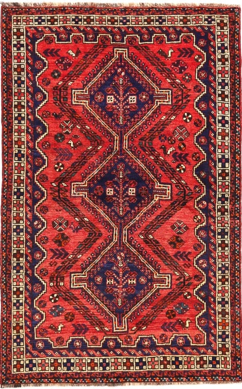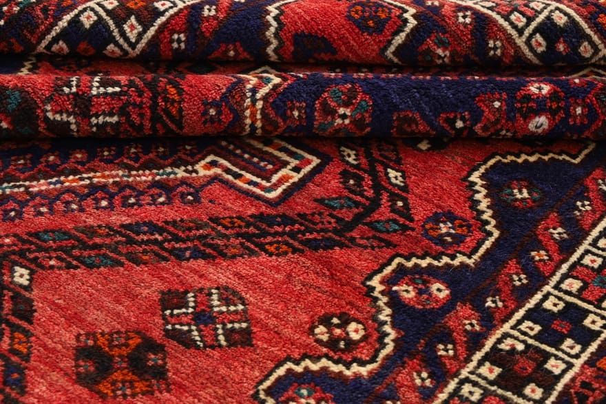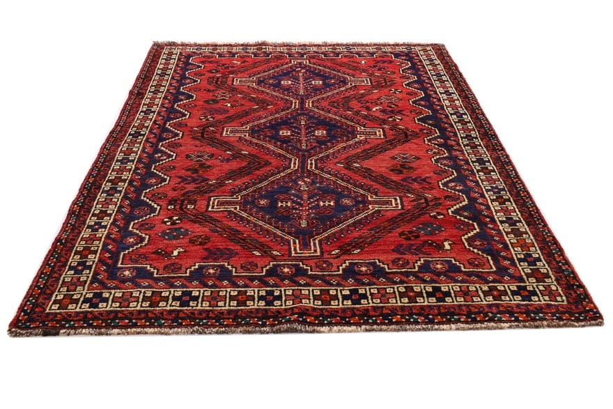 | Traditioneller Shiraz-Teppich | Knotendichte: 128.000 – 160.000 Knoten/m² | Material: Hochwertige Wolle | Größe: 258×165 cm | In neuzeitlichem Zustand | Herkunft: Iran / Persien | Farbe: Rot/Orange | Handgeknüpft | Dicke: ca. 10 mm | Gewicht: ca. 12 kg