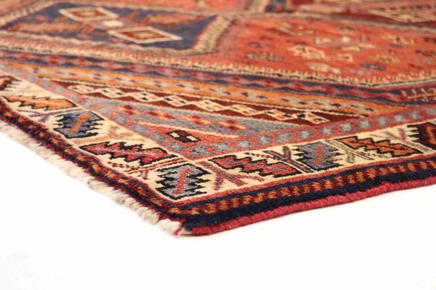 Handgeknüpfter Shiraz-Teppich | Knotendichte: 90.000 Knoten/m² | Material: Wolle | Größe: 259×166 cm | Farbe: Rot/Orange | Zustand: Neu | Ursprung: Iran