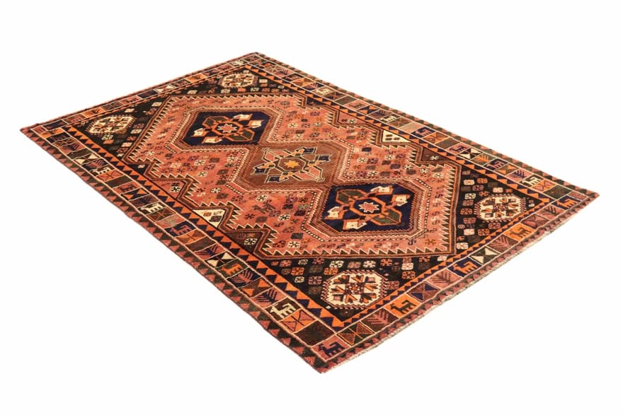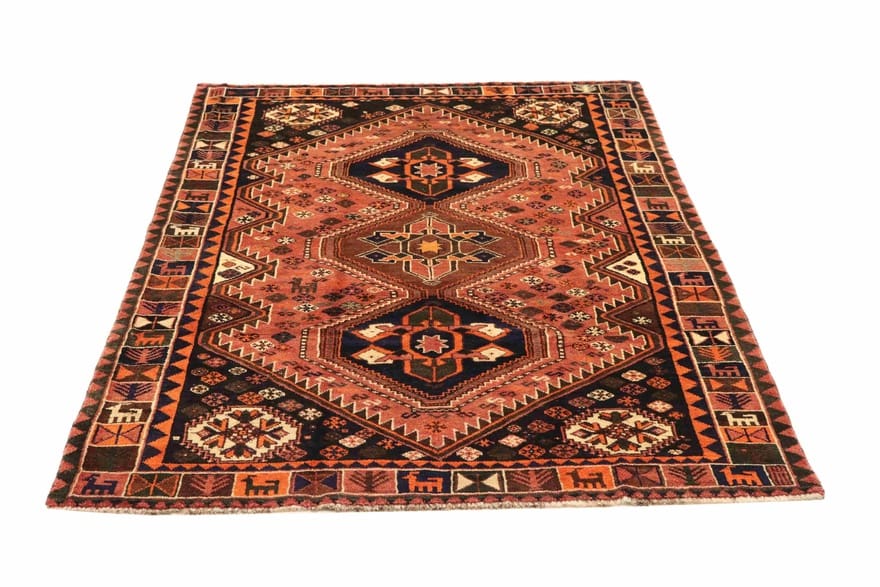 Handgeknüpfter Teppich SHIRAZ | Knotendichte: 160.000 – 200.000 Knoten/m² | Farbe: Rot/Orange | Größe: 263×169 cm | Material: Handgesponnene Wolle | Zustand: Sehr gut | Ursprung: Iran