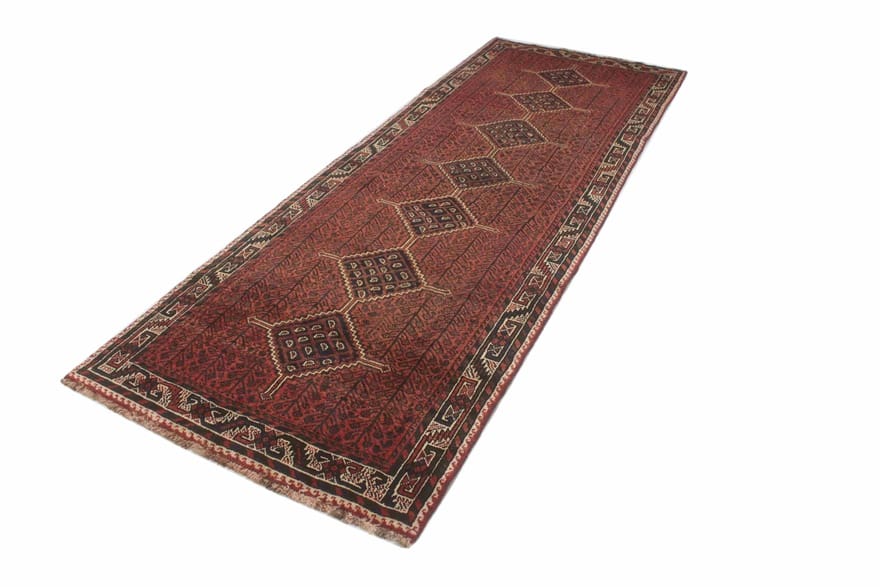 Handgeknüpfter Shiraz-Teppich | Knotendichte: 160.000 – 200.000 Knoten/m² | Material: Hochwertige Wolle | Größe: 319×113 cm | Farbe: Rot/Orange | Zustand: Neu | Ursprung: Iran / Persien