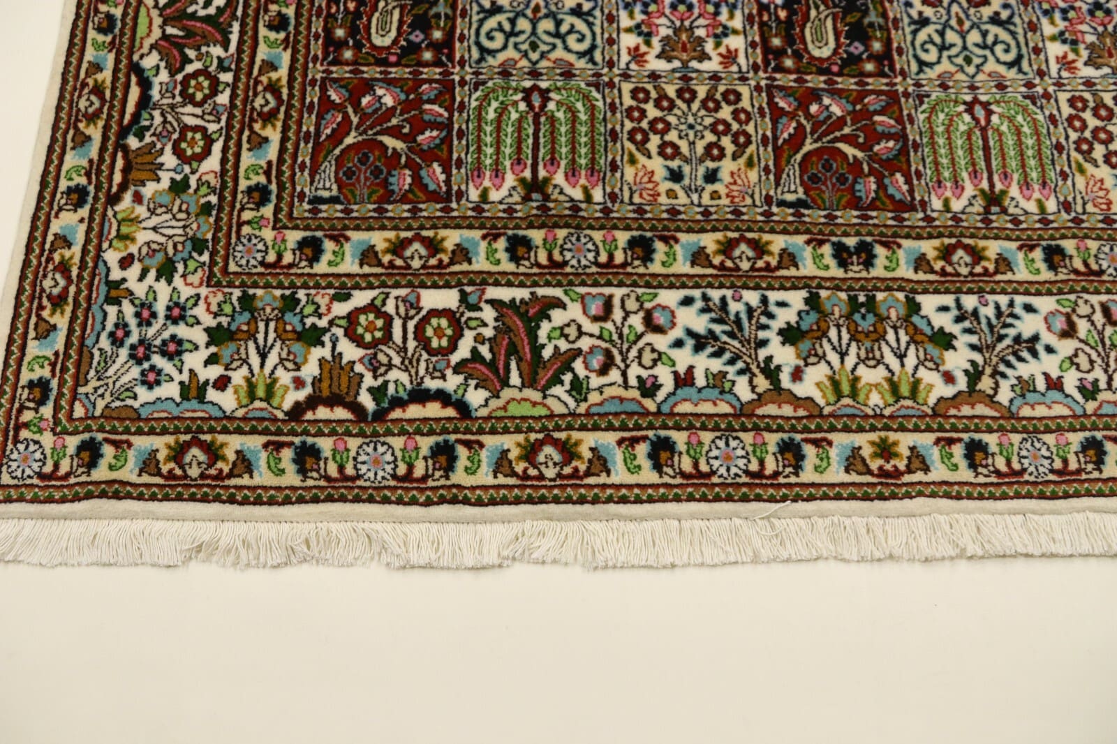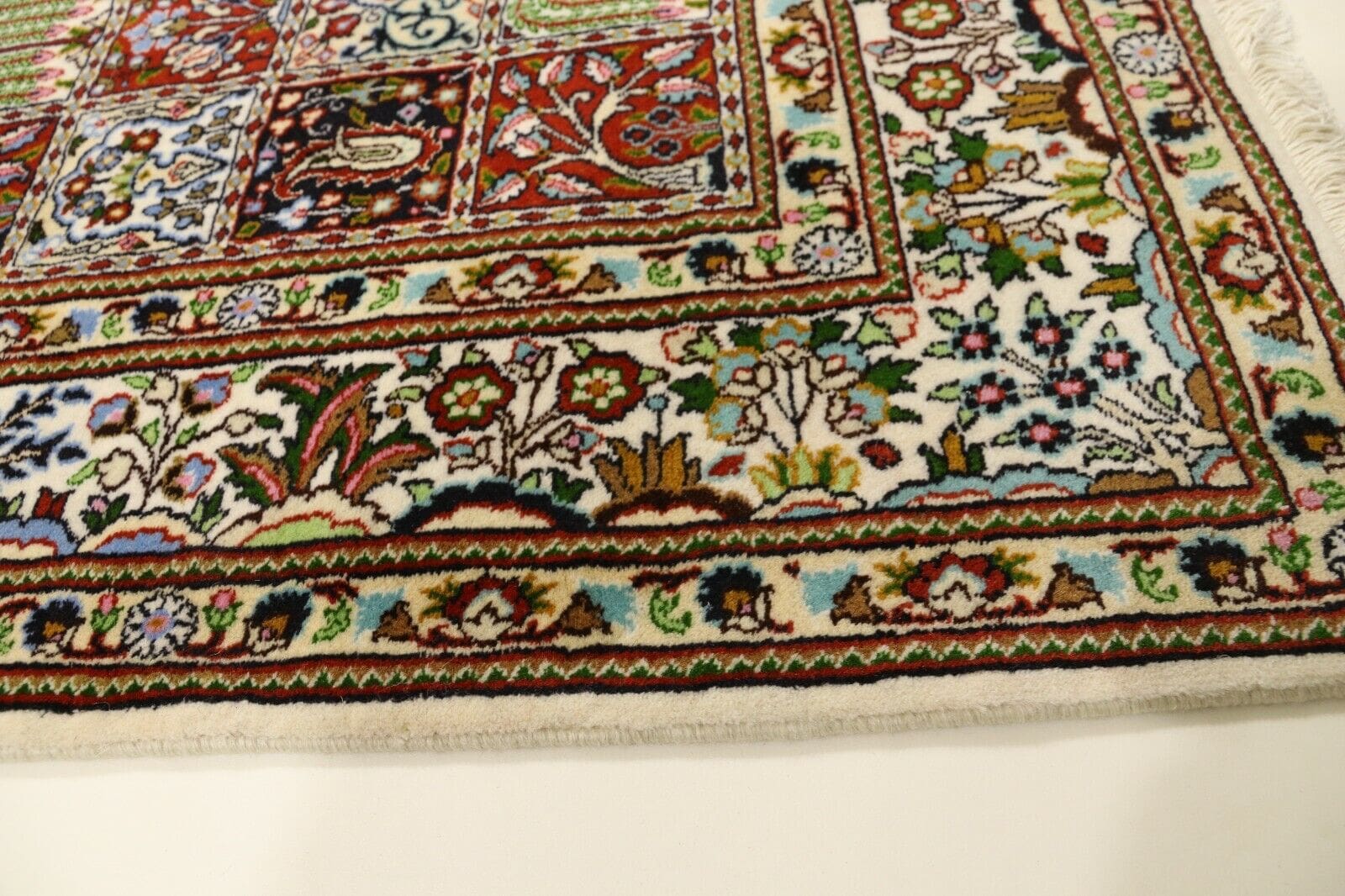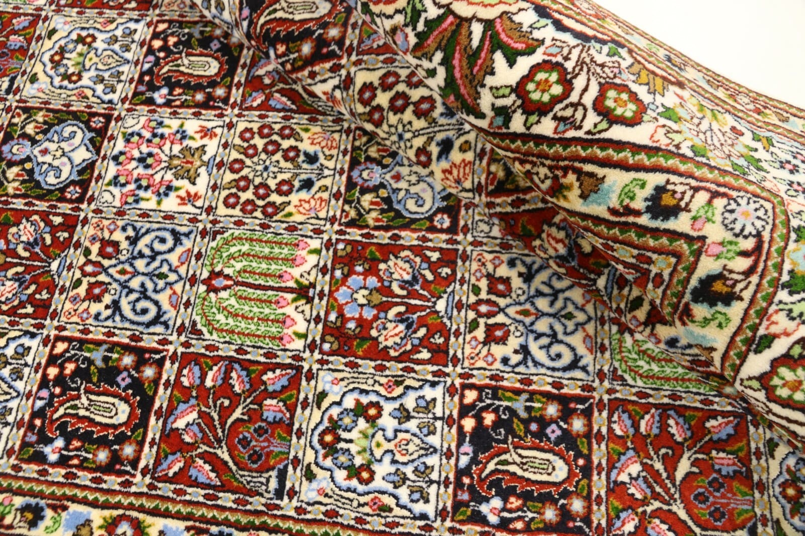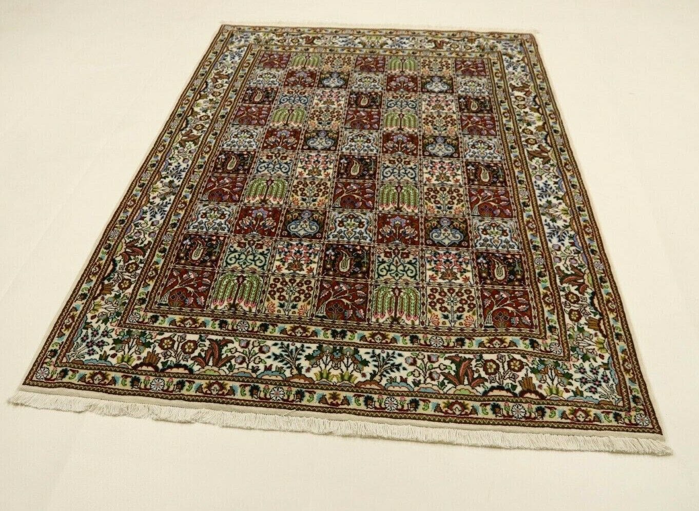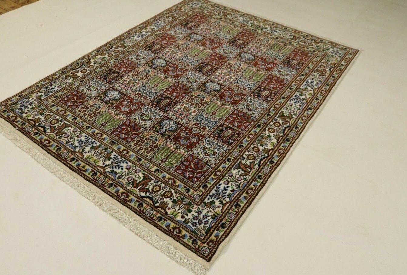 Orientteppich Super Moud | Knotendichte: ca. 400.000 Knoten/m² | Material: 100% Schurwolle mit Seide | Größe: 197×151 cm | Zustand: Neu, sehr gut | Herkunft: Persien, Moud | Handgeknüpft und für Fußbodenheizung geeignet | Stil: Traditionell Orientalisch/Persisch | Gewicht: 8 kg | Dicke: 8 mm | Farben: Mehrfarbig | Unikat/Echtheitszertifikat