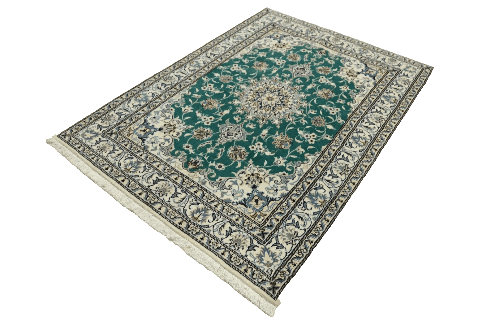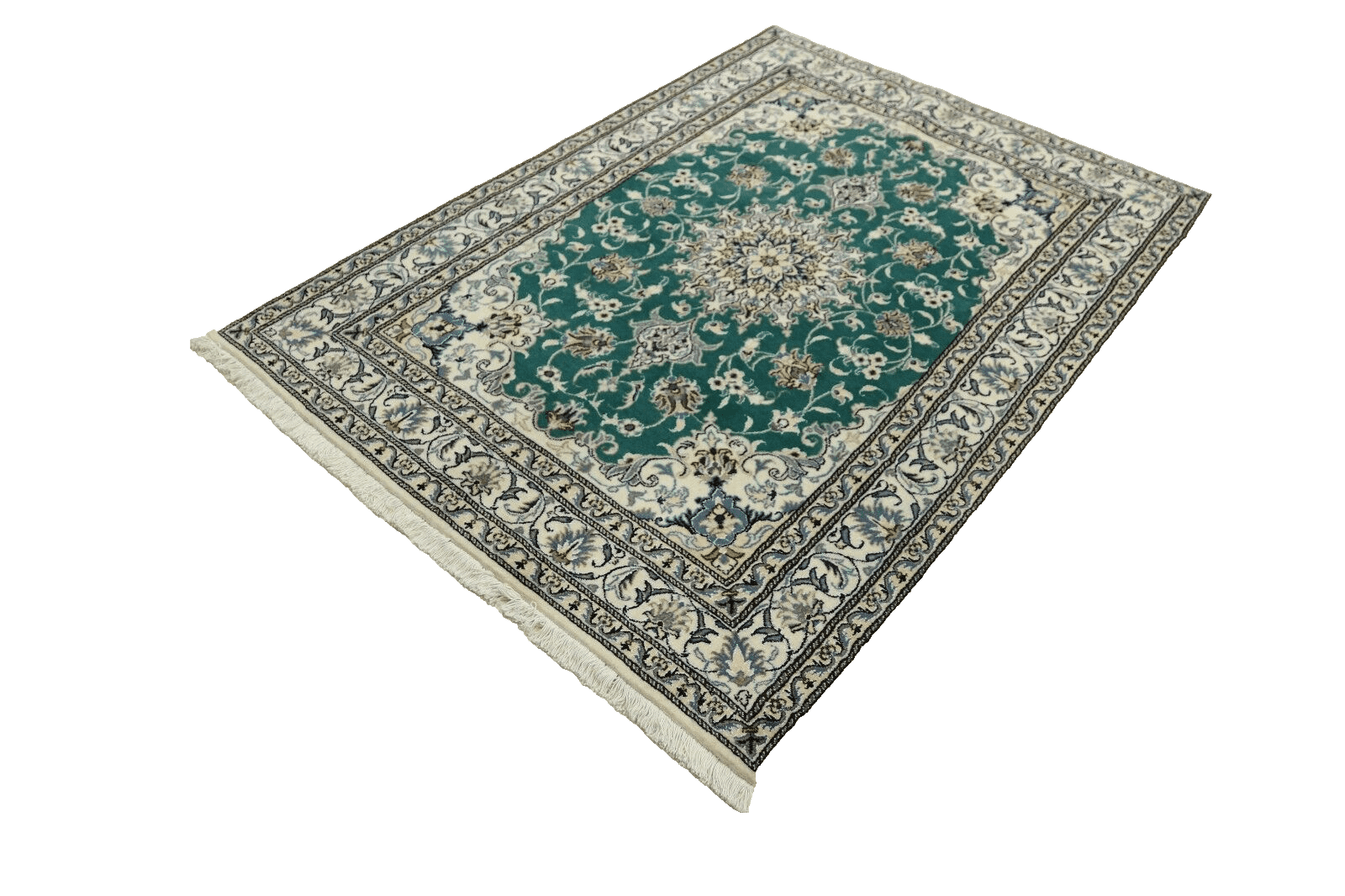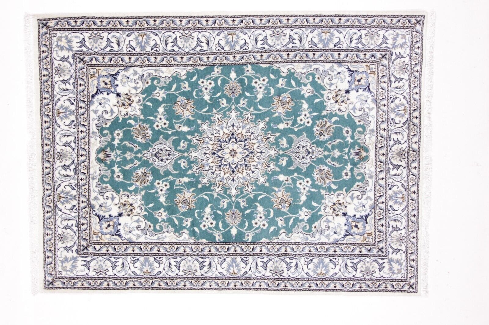 Orientteppich super Nain | Größe: 198 x 146 cm | Knotendichte: ca. 300.000 Knoten/m² | Material: 90 % Schurwolle, 10 % Seide | Zustand: Neu und unbenutzt | Herkunft: Persien | Dicke: ca. 8 mm | Handgeknüpft und einzigartig | Für Fußbodenheizung geeignet, haustierfreundlich | Stil: Traditionell Orientalisch/Persisch