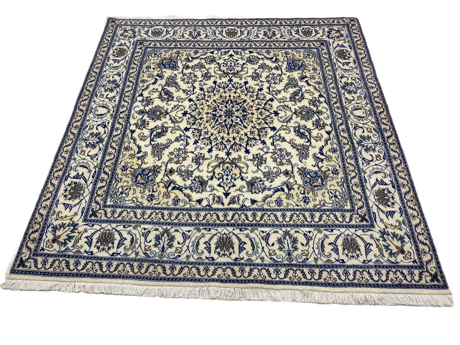 Orientteppich Super Nain | Handgeknüpft | Knotendichte: ca. 300.000 Knoten/m² | Material: 90% Schurwolle, 10% Seide | Größe: 207 x 193 cm | Zustand: Neu, perfekt | Herkunft: Persien | Dicke: ca. 8 mm | Stil: Traditionell Orientalisch/Persisch | Für Fußbodenheizung geeignet, haustierfreundlich