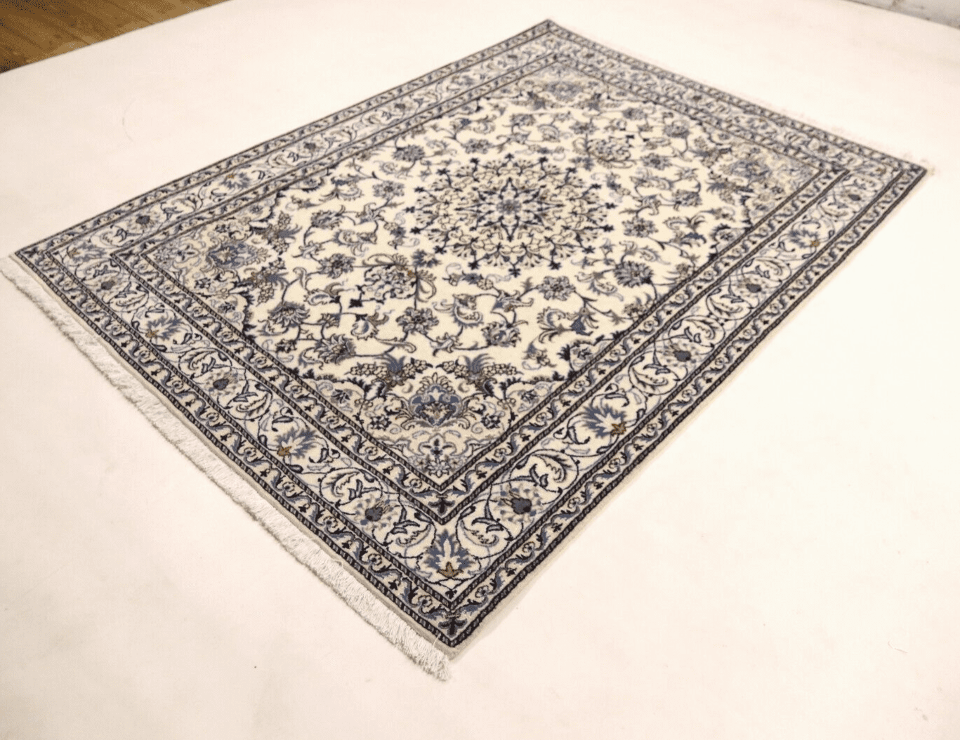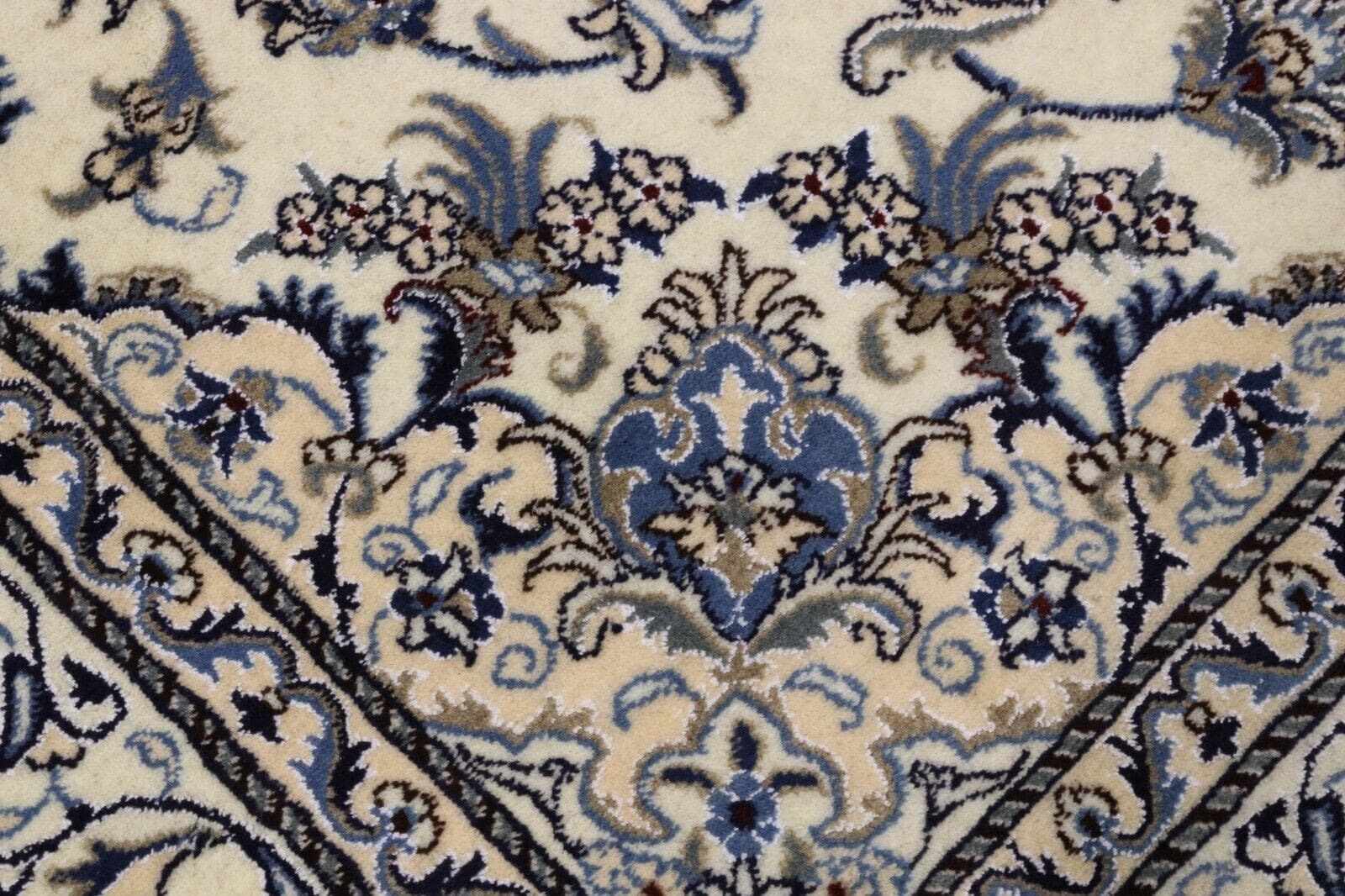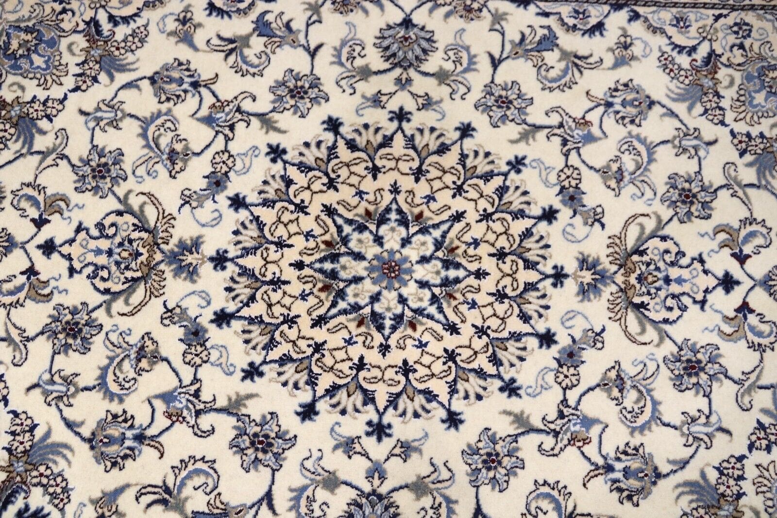 Orientteppich Super Nain mit Seide | Größe: 232 x 163 cm | Knotendichte: ca. 300.000 Knoten/m² | Material: 90 % Schurwolle, 10 % Seide | Kette: 100 % Baumwolle | Zustand: Neu, sehr gut | Herkunft: Persien | Dicke: ca. 8 mm | Handgeknüpft, geeignet für Fußbodenheizung | Mottenresistent, haustier- und kinderfreundlich