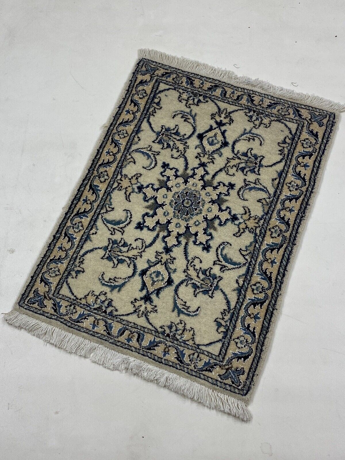 Orientteppich Super Nain 90×60 cm, 300.000 Knoten/m², 90% Schurwolle & 10% Seide, sehr gut, handgeknüpft, Perserteppich