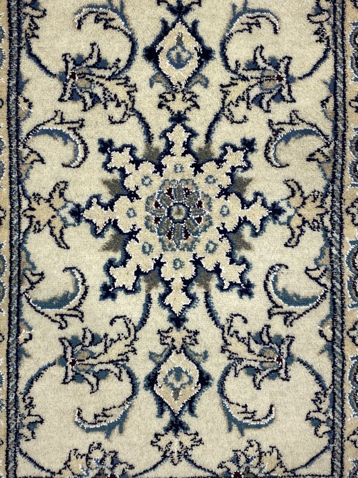 Orientteppich Super Nain mit Seide | Größe: 90 x 60 cm | Knotendichte: ca. 300.000 Knoten/m² | Material: 90 % Schurwolle, 10 % Seide, Kette: 100 % Baumwolle | Zustand: Neu, sehr gut | Herkunft: Persien | Florhöhe: ca. 8 mm | Handgeknüpft, für Fußbodenheizung geeignet | Stil: Traditionell orientalisch/persisch | Besonderheiten: Haustierfreundlich, kinderfreundlich, mottenresistent | Form: Rechteckig | Farben: Mehrfarbig