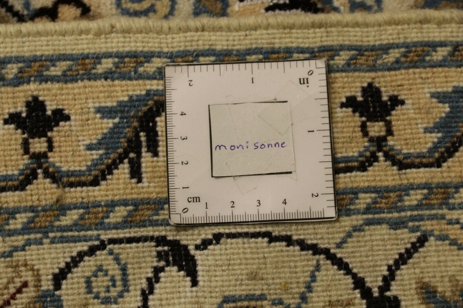 Dank der hohen Knotendichte sind die Details der Muster besonders präzise und gut definiert, was dem Teppich ein bemerkenswertes Erscheinungsbild verleiht. Dieses Zusammenspiel von Farben und Formen macht den Super Nain zu einem idealen Schmuckstück für jedes Zuhause.