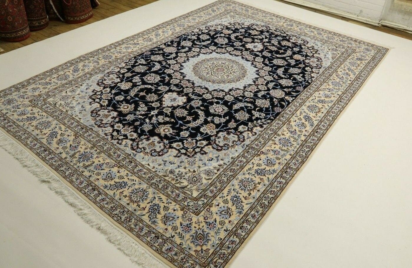 Orientteppich Super Nain 9 La | Größe: 356 x 248 cm | Knotendichte: ca. 500.000 Knoten/m² | Material: 90% Schurwolle, 10% Seide | Kette: 100% Baumwolle | Zustand: Neu, sehr gut | Herkunft: Persien | Stil: Traditionell Orientalisch/Persisch | Dicke: ca. 6 mm | Unikat/Einzelstück
