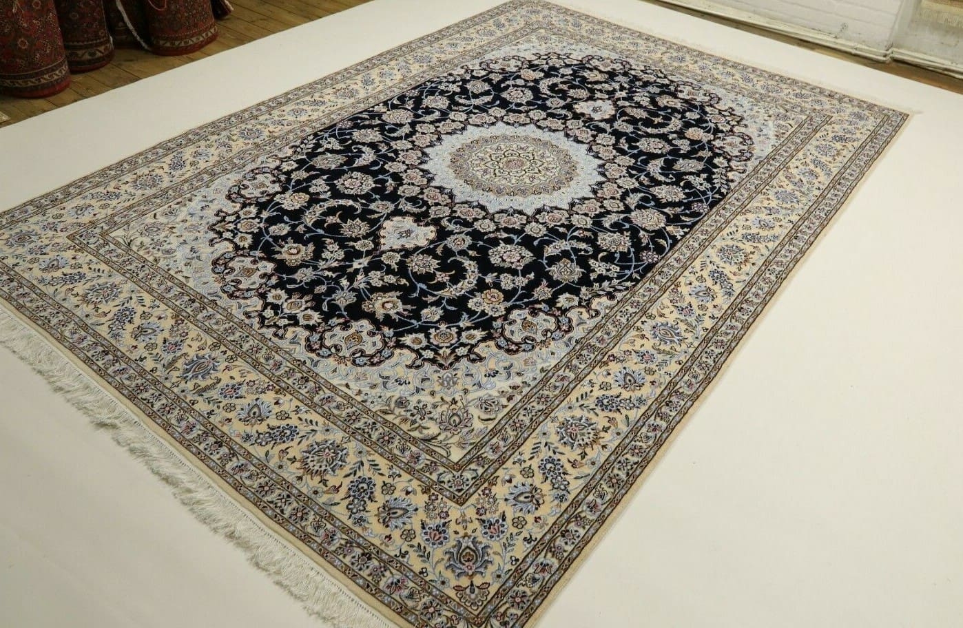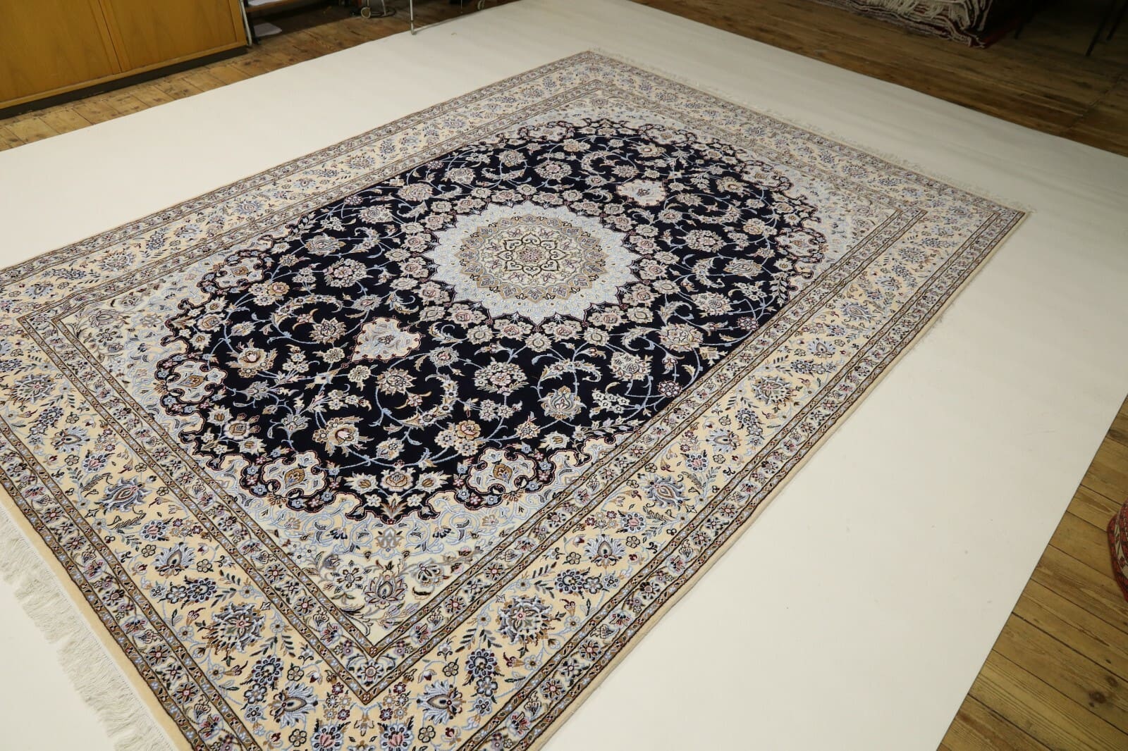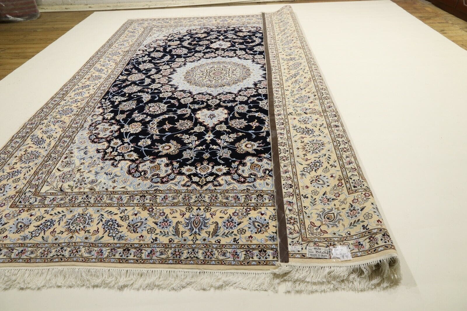 3681$Ursprünglicher Preis war: 3681$1035$Aktueller Preis ist: 1035$ Weiterlesen(Verkauft) W1 (#227) ca. 350x235cm Handgeknüpfter Nain Perserteppich mit Seide 12la