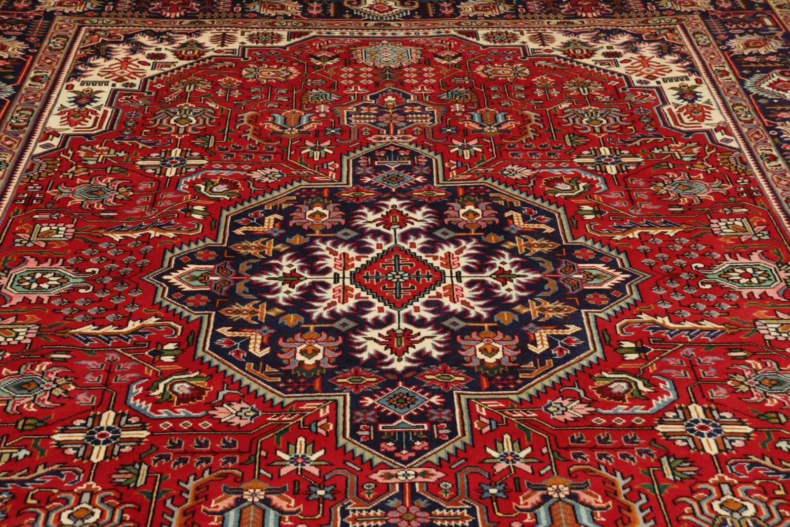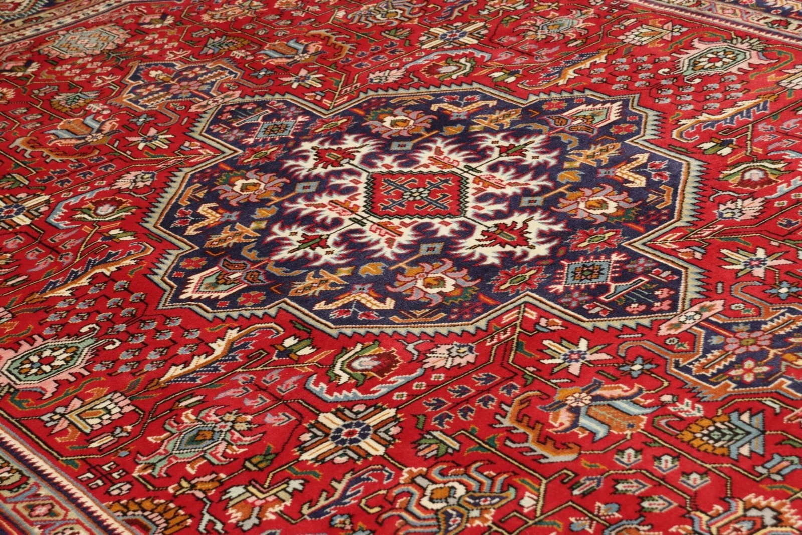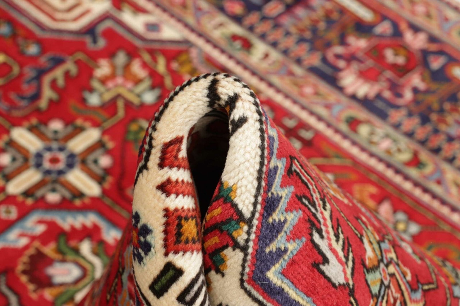 Der Teppich stammt aus Tabriz, einer der bekanntesten Städte im Iran und ein zentrales Zentrum für die Teppichproduktion. Tabriz hat eine lange Geschichte in der Teppichknüpfkunst, die bis ins 16. Jahrhundert zurückreicht. Diese Region ist besonders berühmt für ihre Vielzahl an Mustern, die oft von der reichen Kultur und Natur Persiens inspiriert sind. Die Handwerker in Tabriz verwenden traditionelle Techniken, die von Generation zu Generation weitergegeben werden. Tabriz-Teppiche sind besonders bekannt für ihre filigranen Designs und die hohe Qualität ihrer Materialien.