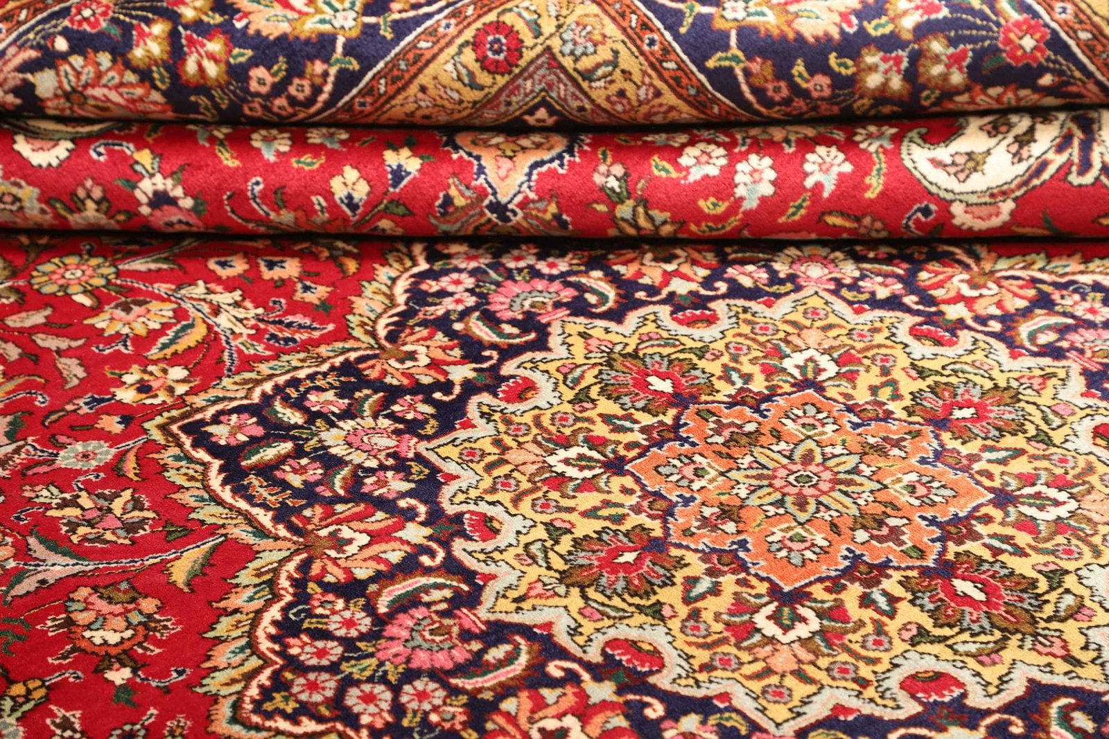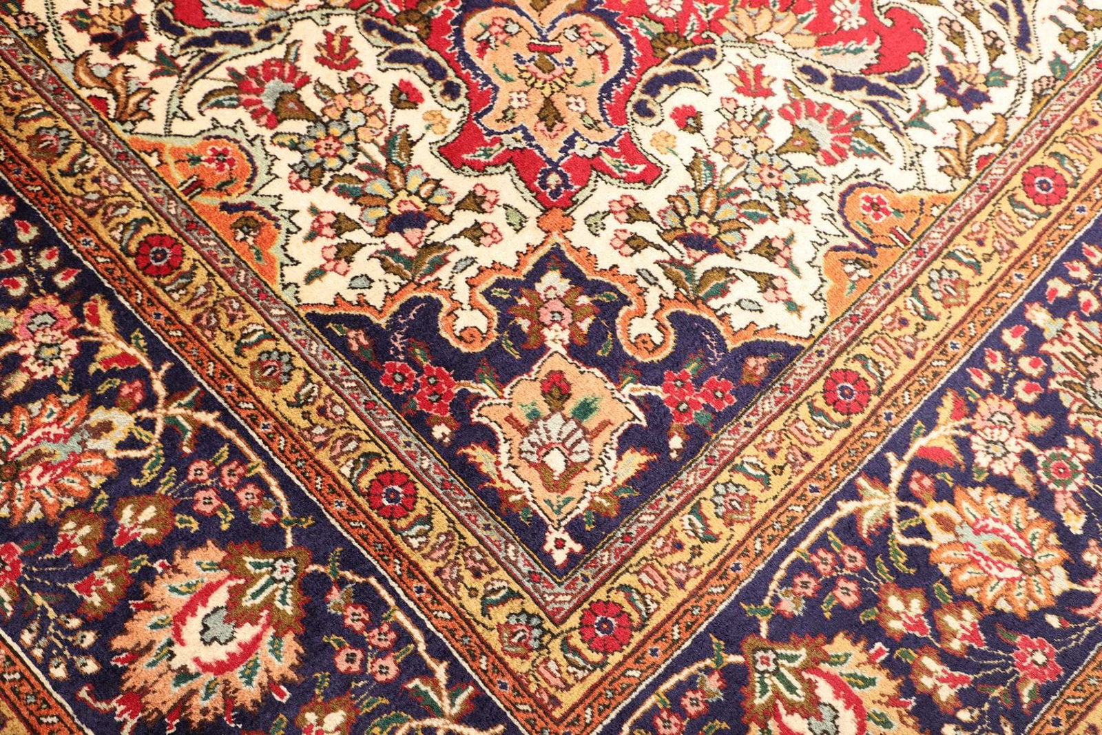 Die Farbauswahl und das Design sind typisch für die Teppichtradition von Täbriz und spiegeln die kulturelle Vielfalt und die künstlerische Entwicklung der Region wider. Durch die Verwendung von natürlichen Farbstoffen wird eine Langlebigkeit und Farbintensität erreicht, die den Teppich in jedem Raum zum strahlenden Mittelpunkt macht.
