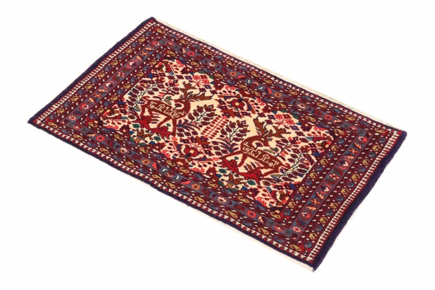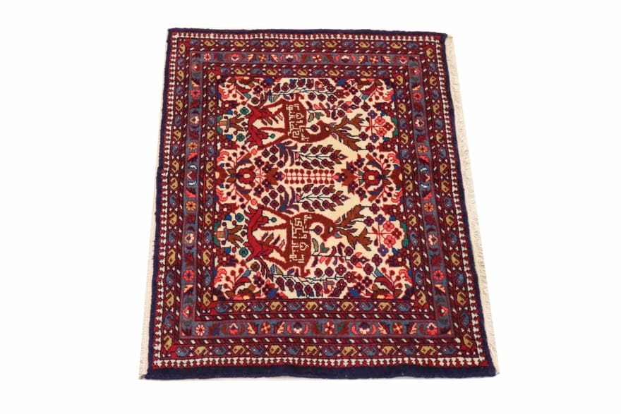 Handgeknüpfter Tafresh Teppich | Knotendichte: 200.000 – 250.000 Knoten/m² | Material: Handgesponnene Wolle und Baumwolle | Größe: 97×61 cm | Farbe: Weiß/Beige | Zustand: Neu | Herkunft: Iran/Persien | Dicke: ca. 8 mm | Gewicht: ca. 2 kg