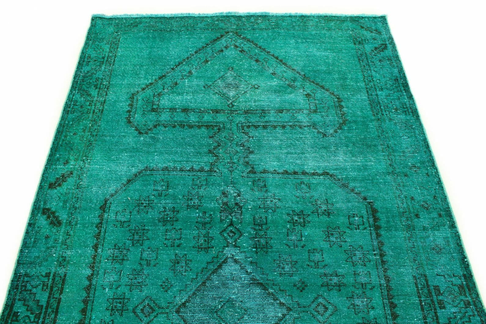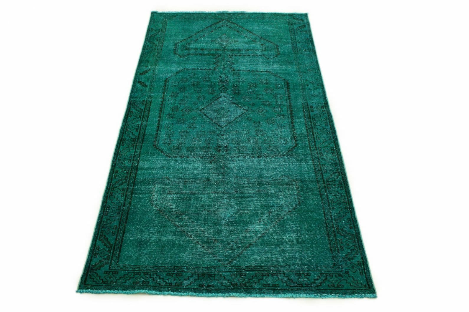 Orientteppich Türkis Grün 285x142cm, Vintage Design, handgeknüpft