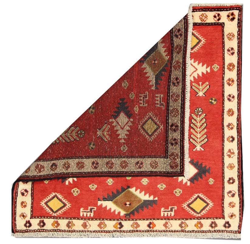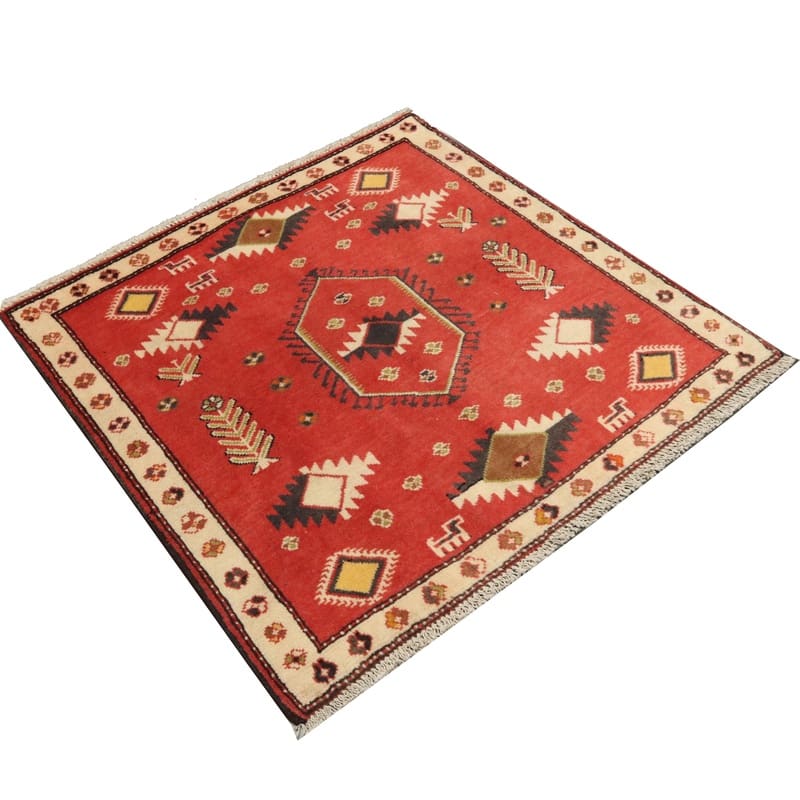 Handgeknüpfter Turkaman-Teppich | Knotendichte: 160.000 – 200.000 Knoten/m² | Material: 100% natürliche Wolle | Größe: 102×101 cm | Herkunft: Turkaman-Region, Persien | Zustand: Neuzeitlich (0-20 Jahre) | Farben: Rot/Orange | Pflege: Regelmäßiges Staubsaugen empfohlen