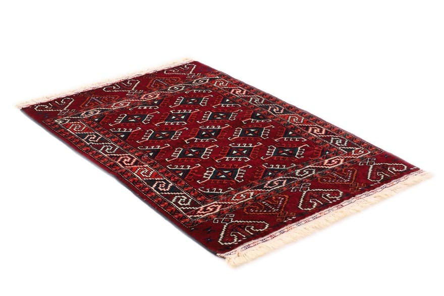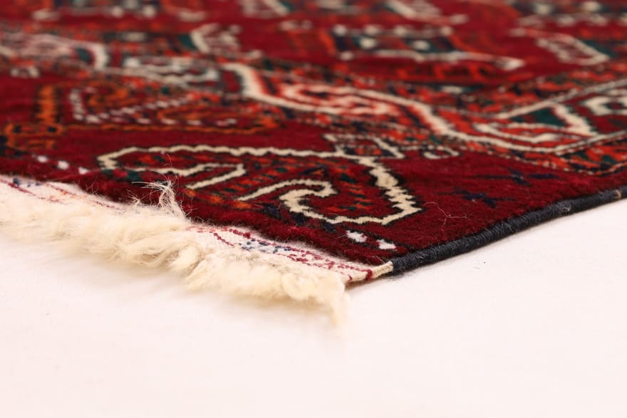 Handgeknüpfter Turkaman-Teppich | Knotendichte: 320.000 – 360.000 Knoten/m² | Material: 100% handgesponnene Wolle | Größe: 124×84 cm | Herkunft: Turkaman-Region, Persien | Zustand: Neuzeitlich (0-20 Jahre) | Farben: Rot/Orange | Form: Rechteckig | Gewicht: ca. 2 kg | Pflegehinweise: Regelmäßiges Staubsaugen empfohlen