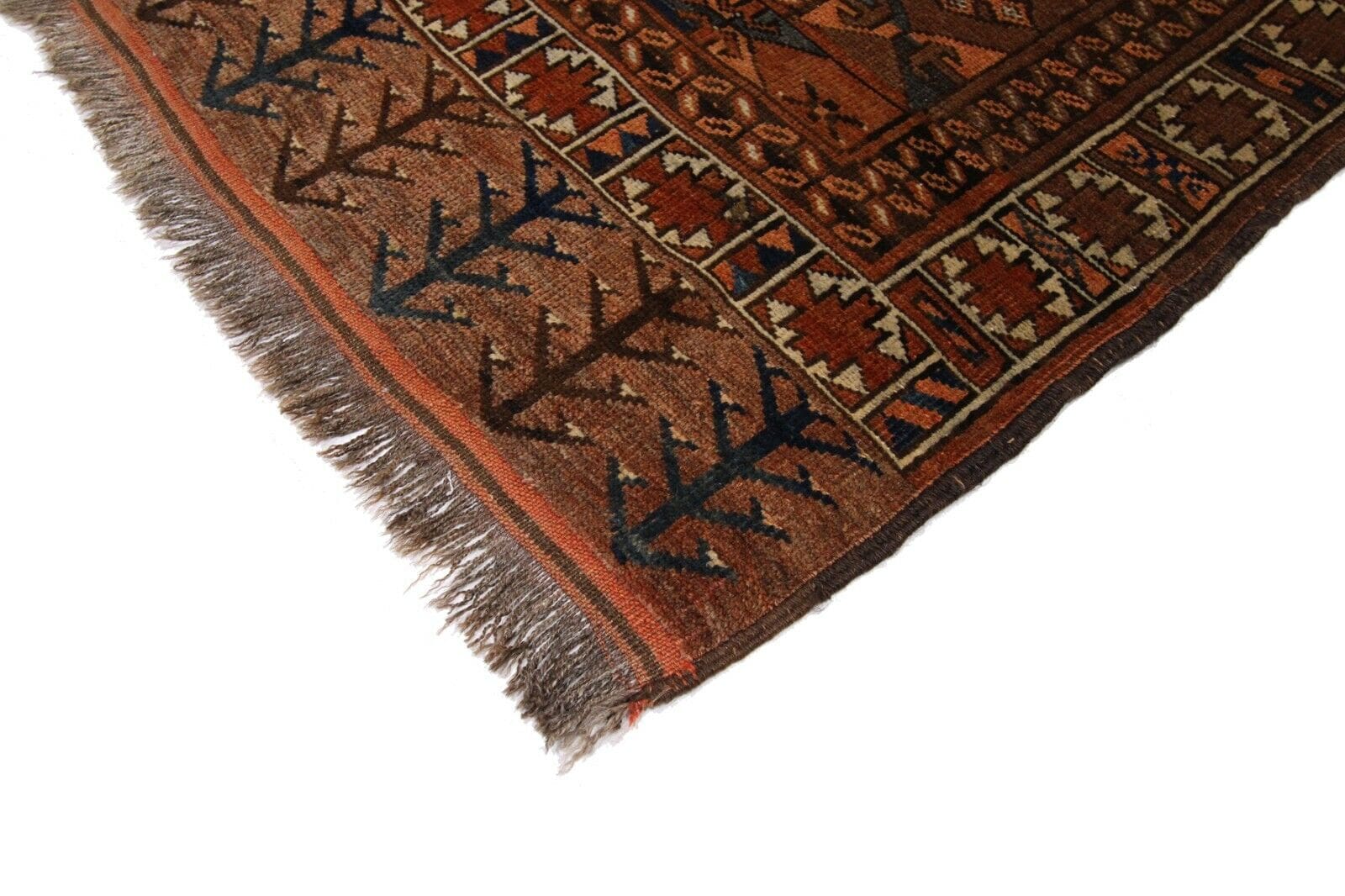 Original Afghan Alt Teppich 204×155 cm Braun, handgeknüpft, Perserteppich